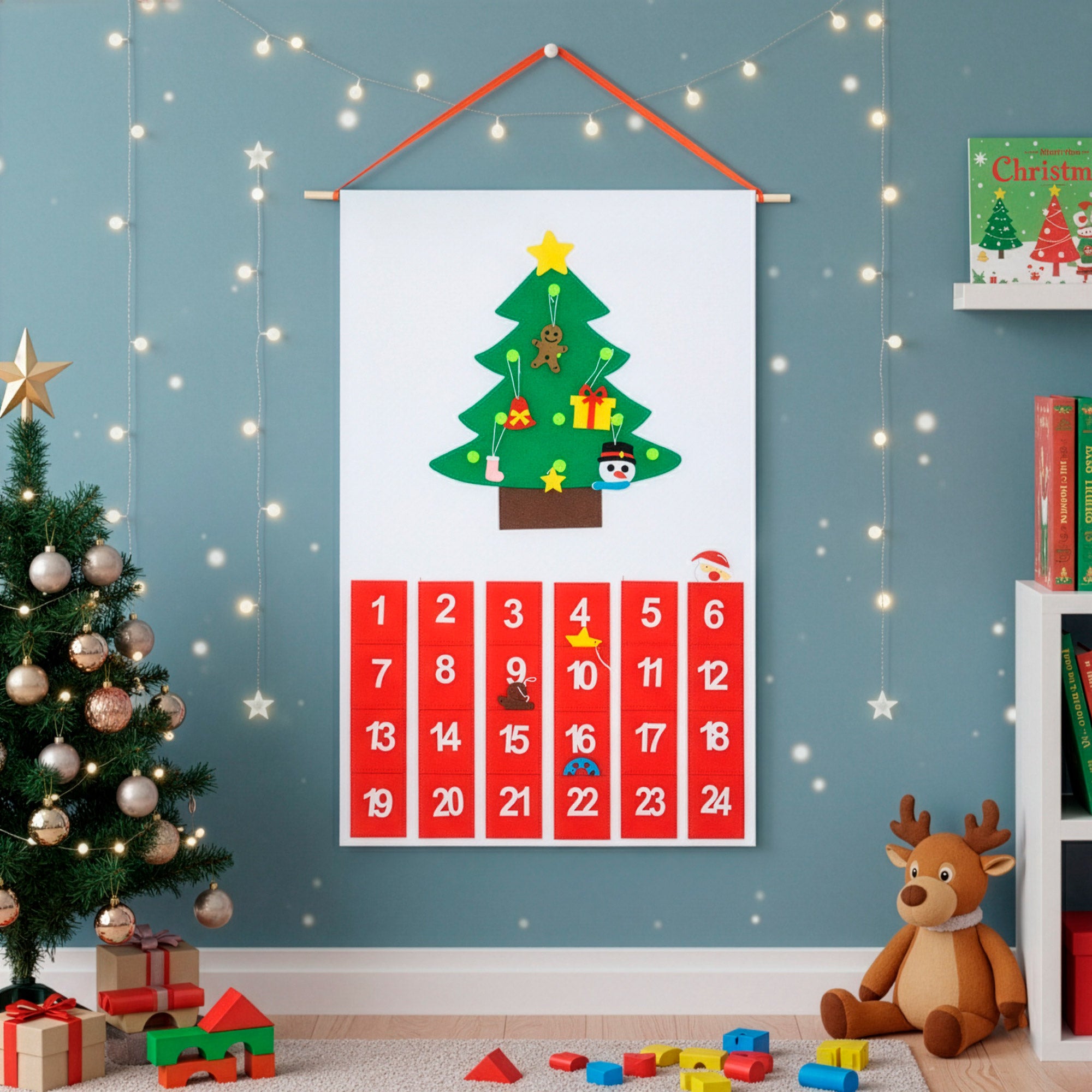 Dankzij de heldere kleuren en vilten elementen past de kalender binnen uiteenlopende interieurstijlen en kan hij jaar na jaar opnieuw worden gebruikt. De meegeleverde houten hanger zorgt voor stabiliteit en een natuurlijke uitstraling. Het product vormt tevens een aantrekkelijk cadeau voor wie graag aftelt naar de feestdagen.