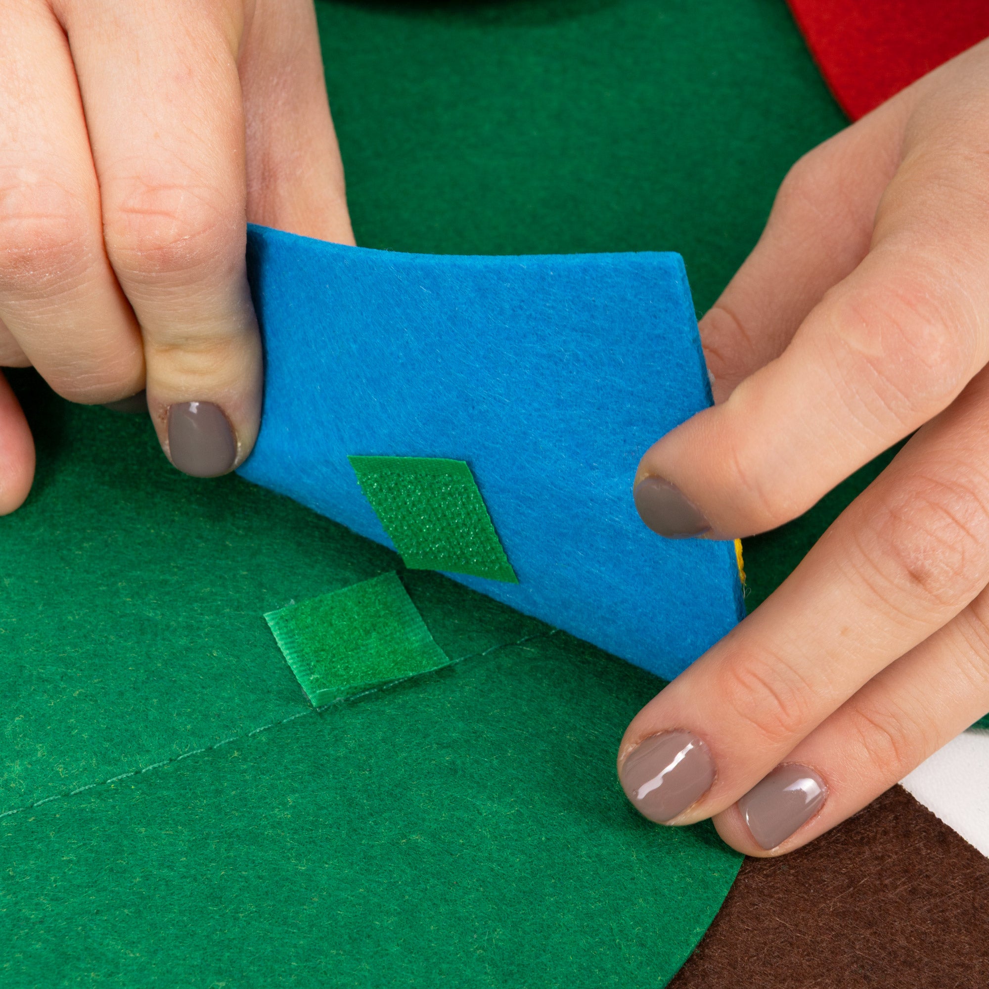 - De set bestaat uit viltversieringen die met klittenband bevestigd worden.