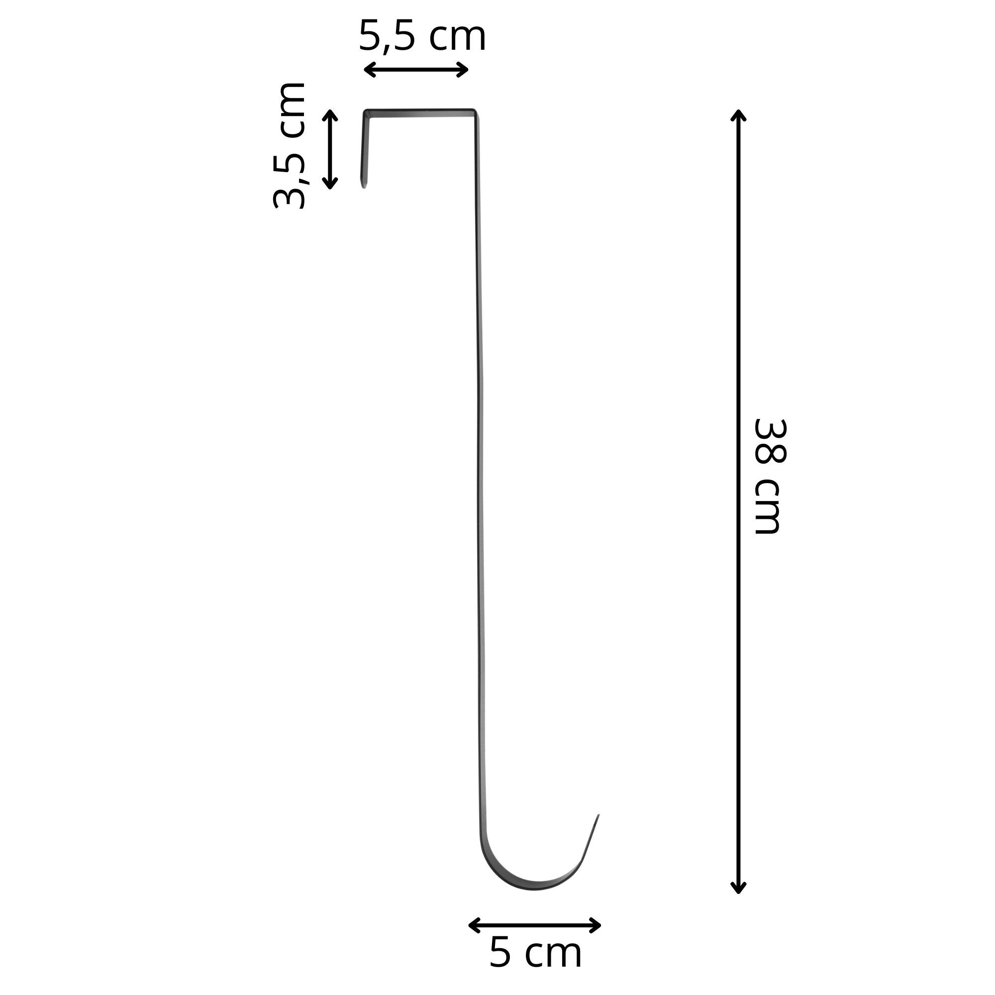 Met een totale hoogte van 38 centimeter en een breedte van 2 centimeter biedt deze deurhaak voldoende ruimte voor allerlei soorten decoraties. De haak is ideaal voor het ophangen van kerstkransen, linten, bloemstukken of lichte seizoensdecoraties. De neutrale zwarte kleur maakt hem geschikt voor elk jaargetijde en elke gelegenheid – van kerst tot lente- of herfstdecoratie.