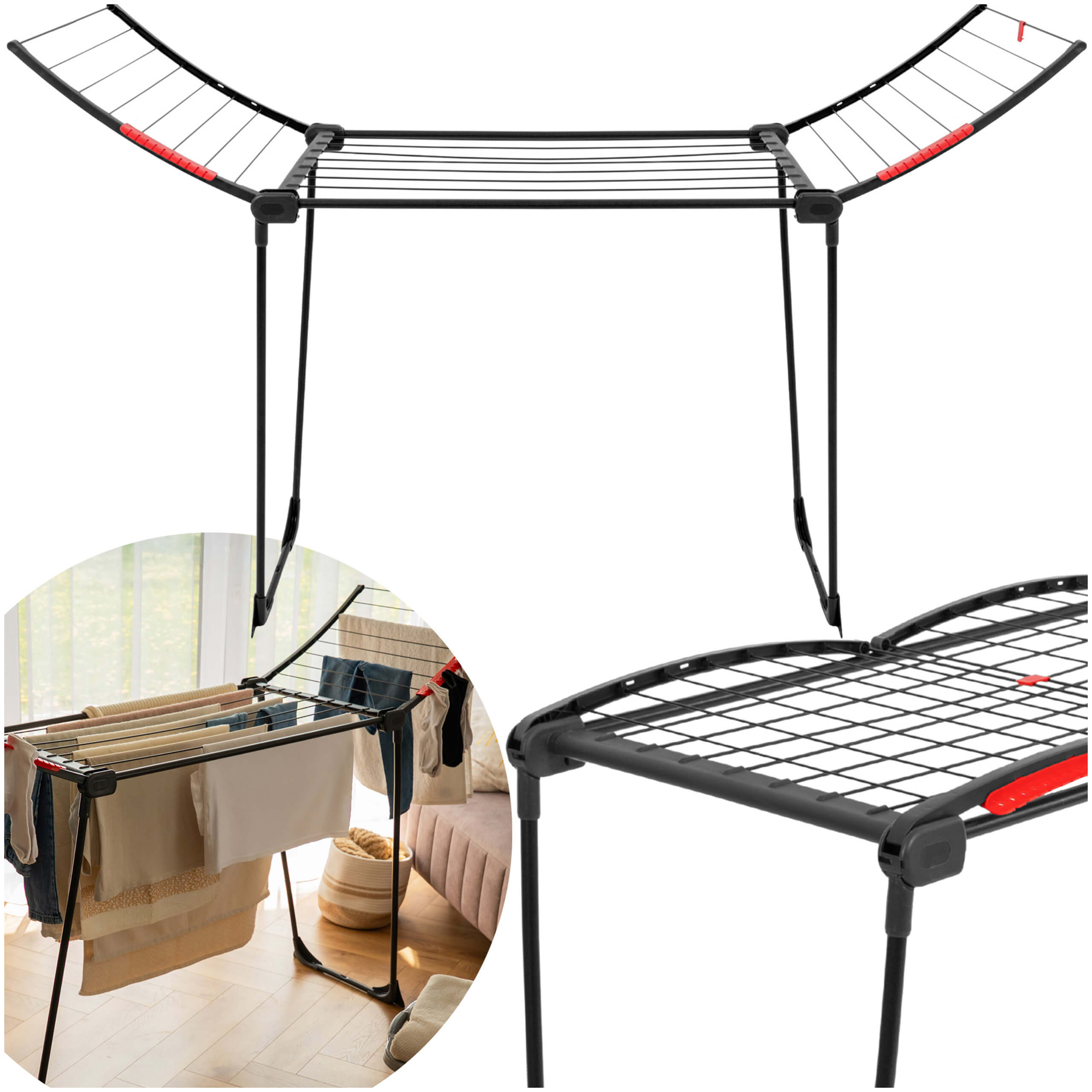 Het opvouwbare droogrek van Springos® is de ideale oplossing voor wie praktische functionaliteit en ruimtebesparing belangrijk vindt. Gemaakt van hoogwaardig staal en kunststof, uitgevoerd in een stijlvolle kleurstelling, combineert dit droogrek duurzaamheid met een moderne uitstraling. Dankzij het slimme, opvouwbare ontwerp biedt het royaal ruimte om wasgoed op te hangen, terwijl het na gebruik nauwelijks plek inneemt. Met een draagvermogen tot 15 kg is dit rek ook geschikt voor grotere huishoudens.