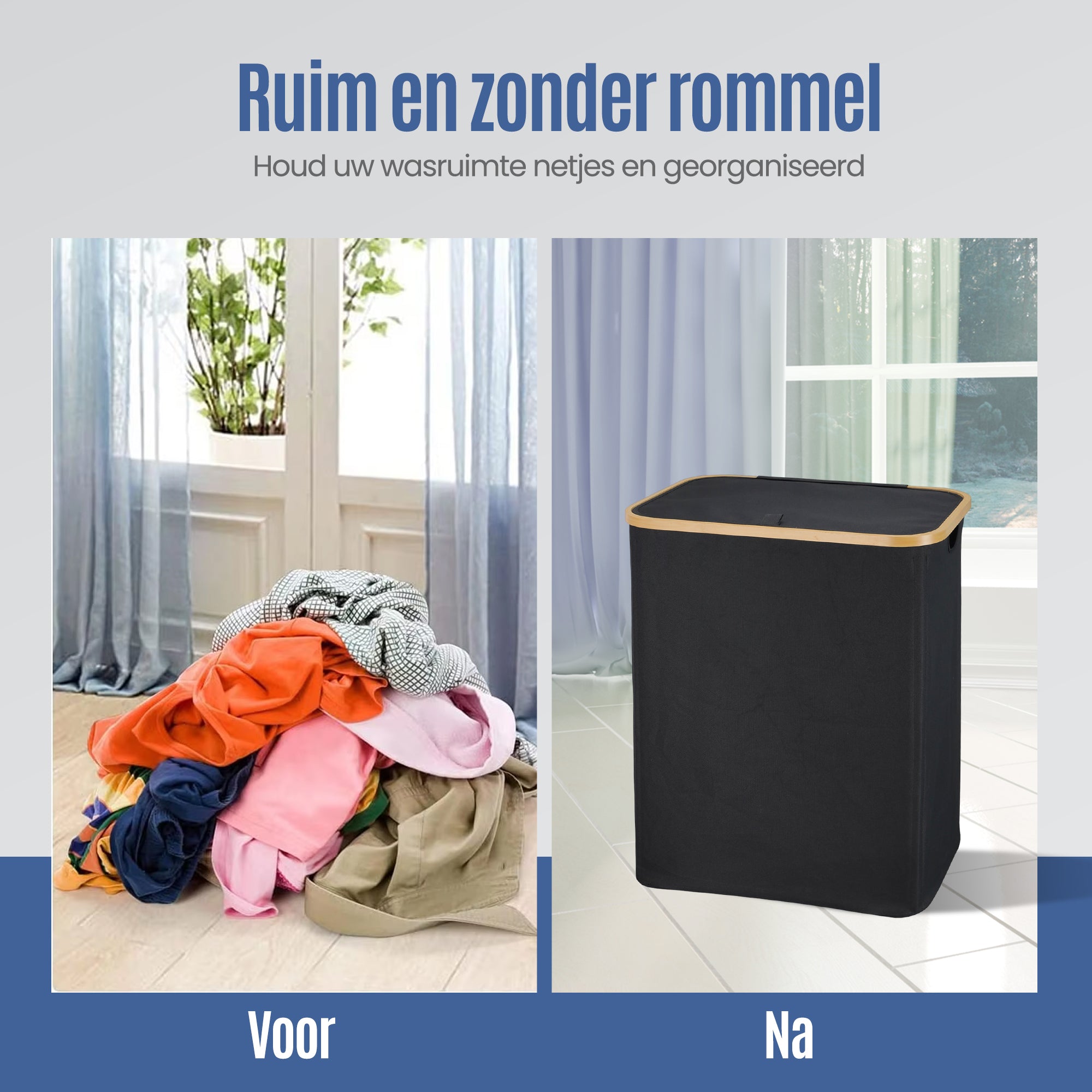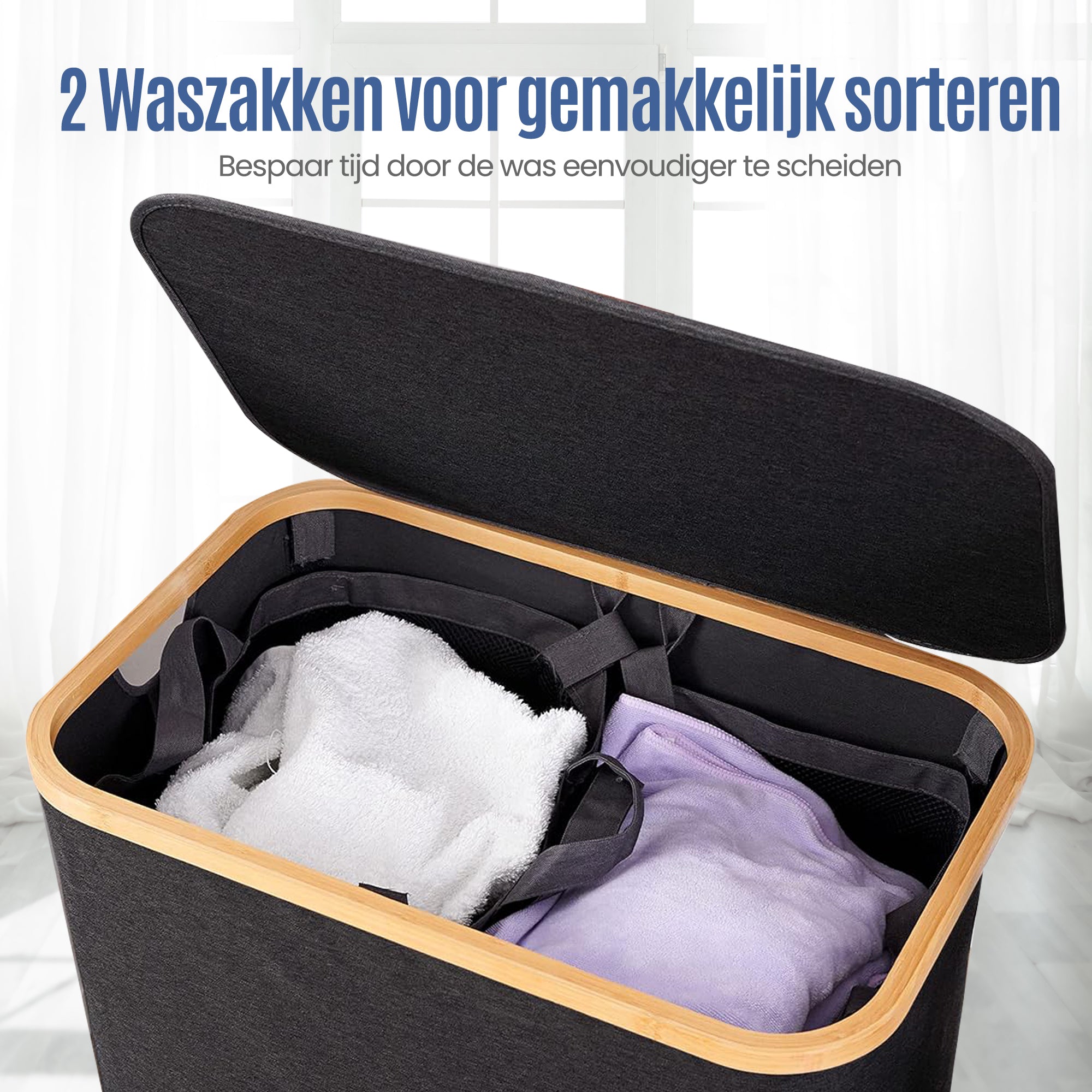 Deze praktische, opvouwbare wasmand met twee ruime compartimenten is de ideale oplossing voor het efficiënt sorteren van je wasgoed. Of je nu was wilt scheiden op kleur, soort of gezinslid – met deze wasverzamelaar houd je altijd overzicht.