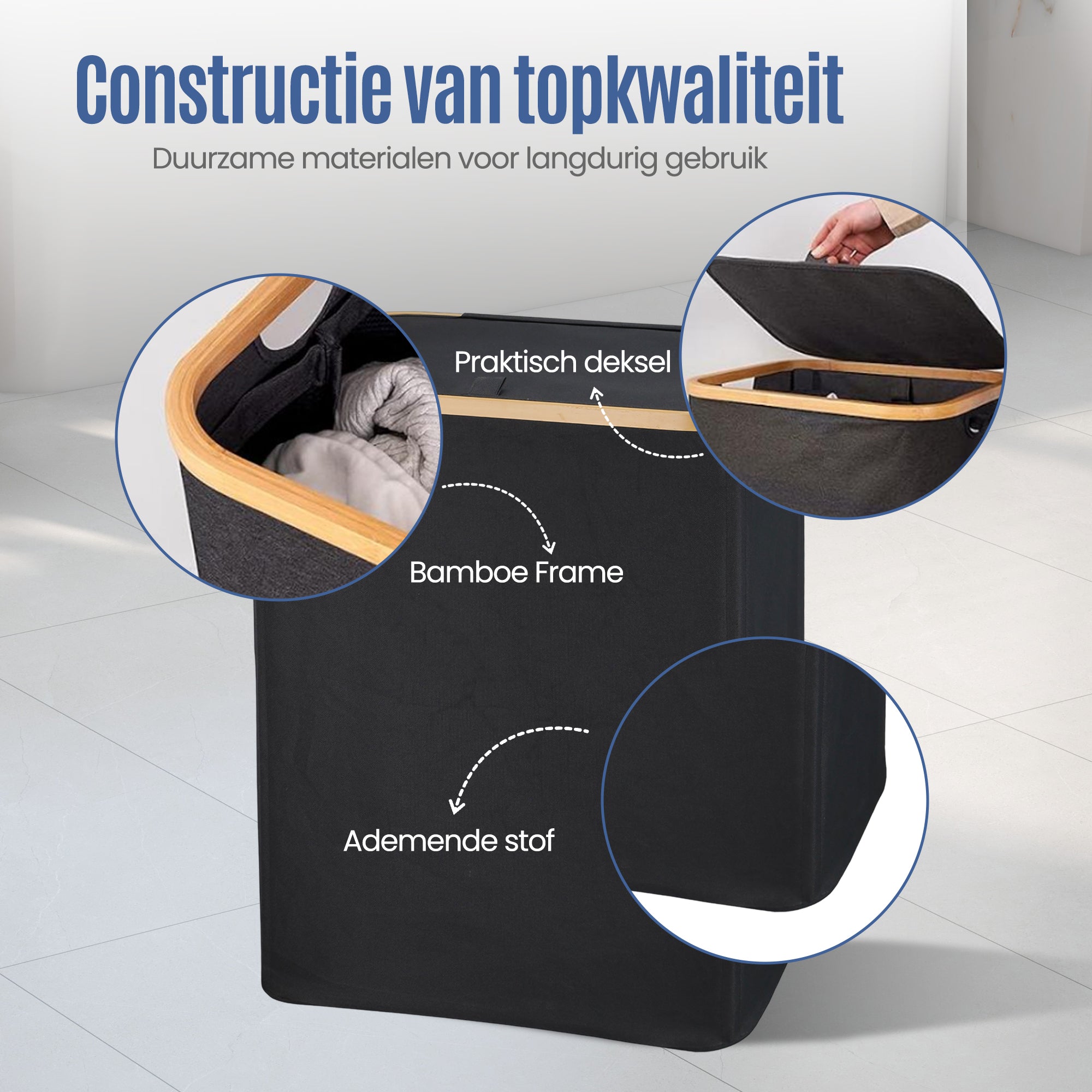 De uitneembare binnenzakken maken het legen van de wasmand eenvoudig en zijn geschikt voor de wasmachine. Het ademende materiaal voorkomt nare geurtjes en zorgt ervoor dat de was fris blijft tot het wasmoment.