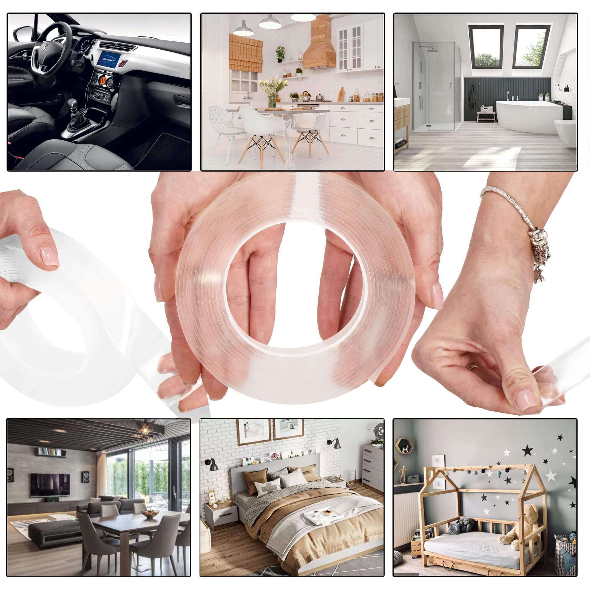 Met Springos tape kun je een breed scala aan accessoires bevestigen, variërend van schilderijen en spiegels tot badkamerhaken en stopcontacten. Het is ook ideaal voor het vastzetten van tapijten om slipgevaar te verminderen. Deze tape kan gebruikt worden in de woonkamer, badkamer, keuken, slaapkamer, kantoor en zelfs in de auto. Het is praktisch onzichtbaar en vervult zijn functie perfect.