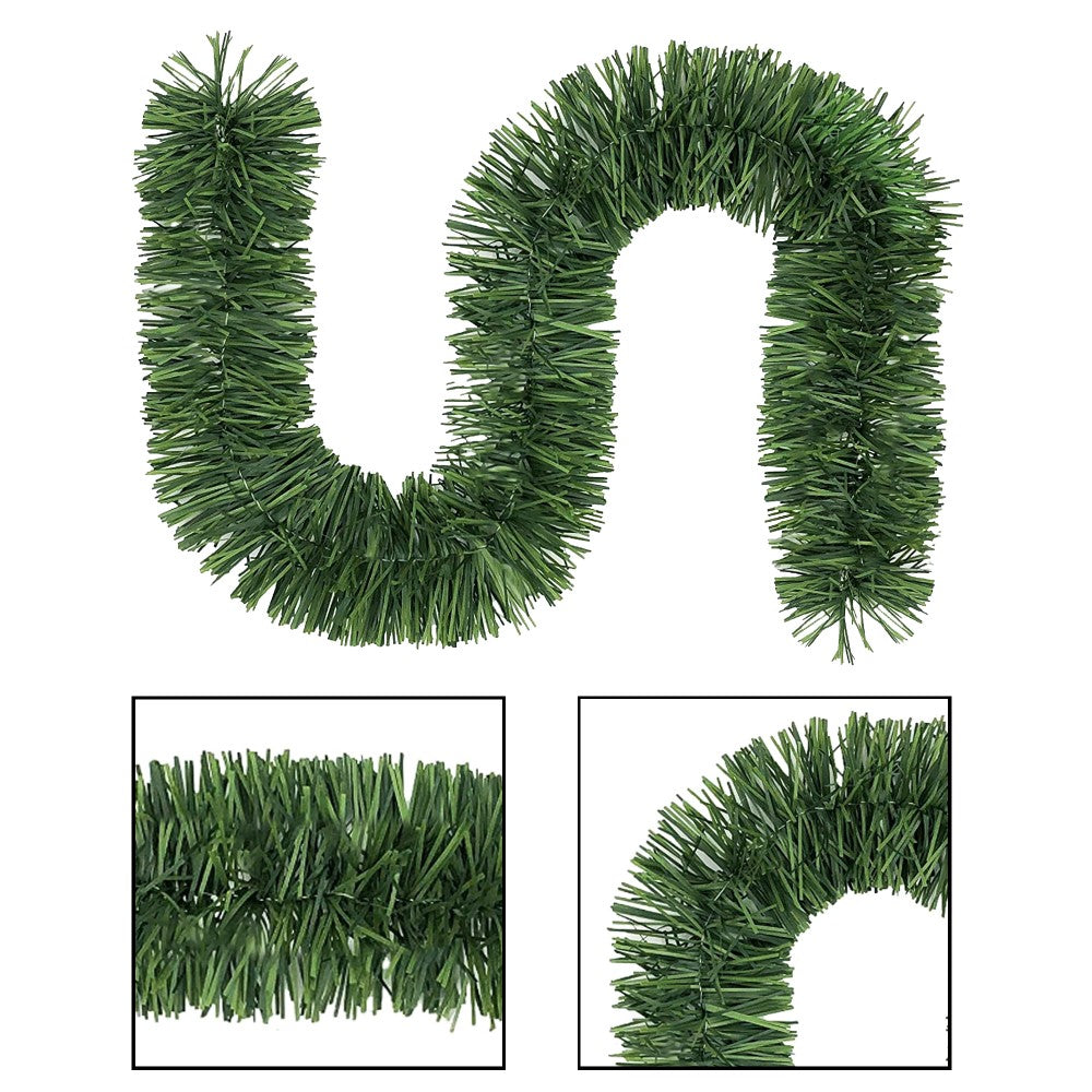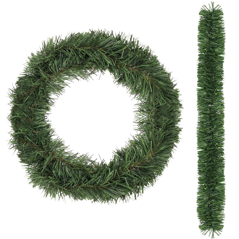 De guirlande van Springos is gemaakt van het beste PVC. De groentint geeft de guirlande een kerstige uitstraling die multi-inzetbaar is bij de versiering van het interieur. De guirlande bestaat uit een groot aantal kunstnaalden, die stevig zijn bevestigd zodat deze er niet vanaf vallen. Zo kun je een flink aantal jaren genieten van dit mooie flexibele en vormbare product en hem eenvoudig decoreren met lampjes en kerstballen.