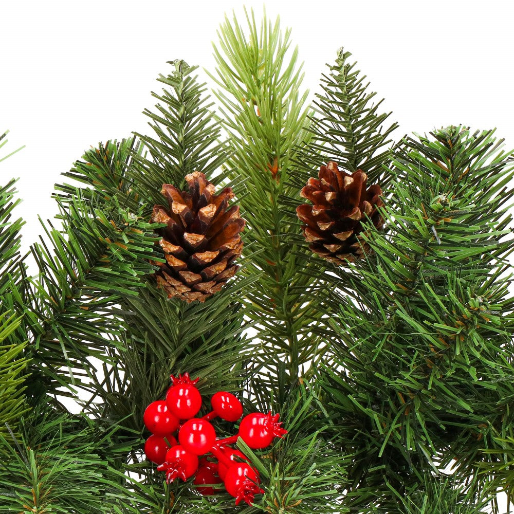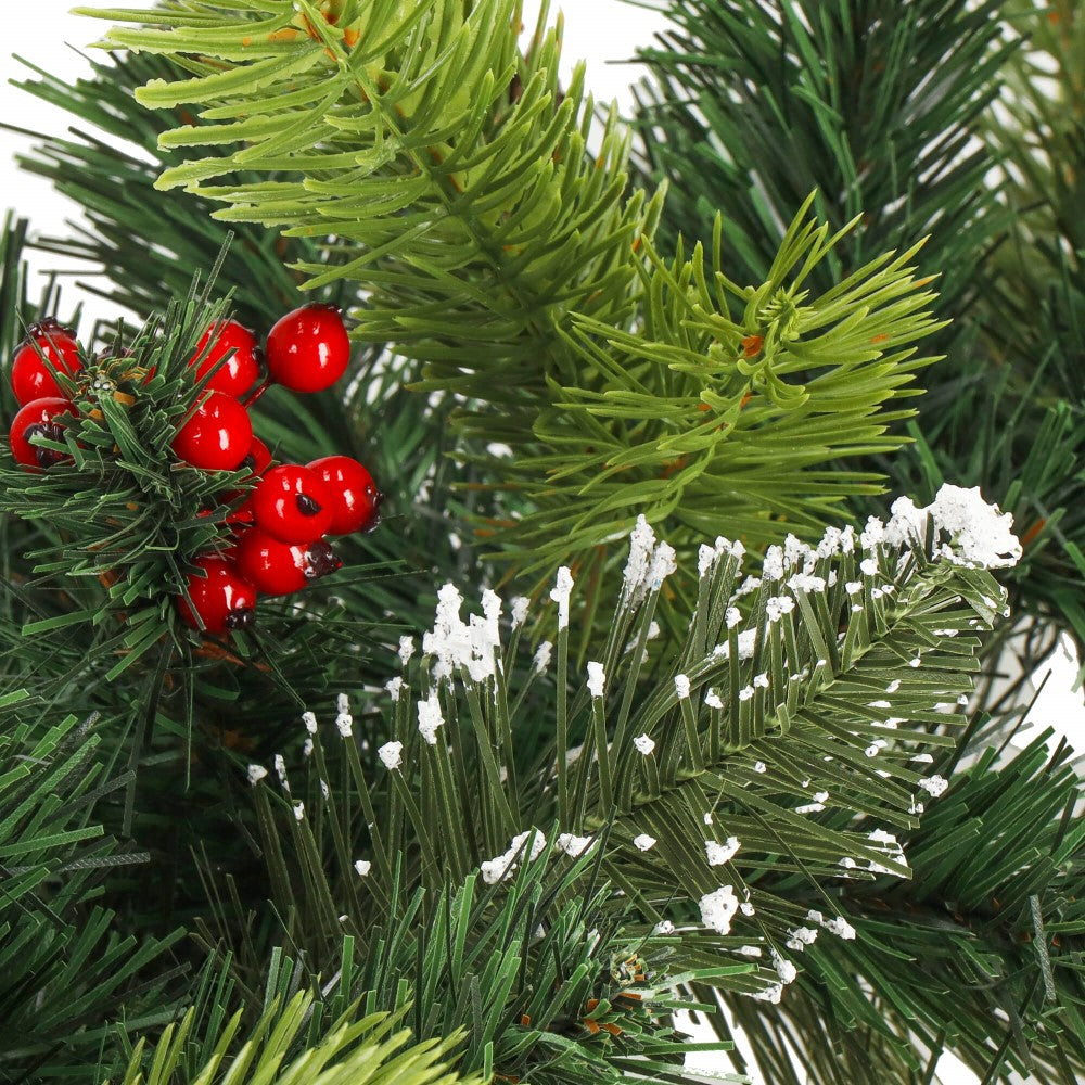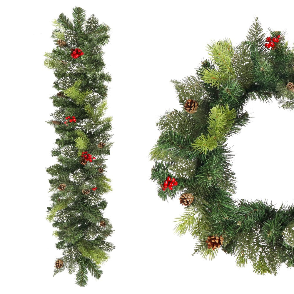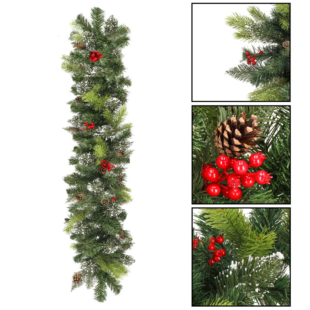 De guirlande van Springos is gemaakt van de beste materialen. De combinatie van PE, PVC en de dichtheid van de verschillende takken zorgt voor een realistische look en feel. De verschillende groentinten, een besneeuwde tak hier en daar en elementen als dennenappels en rode besjes geven de guirlande een natuurlijke uitstraling. Het voordeel hiervan is dat je de guirlande zelf eventueel nog kunt pimpen met de extra elementen als lampjes en kerstballen.