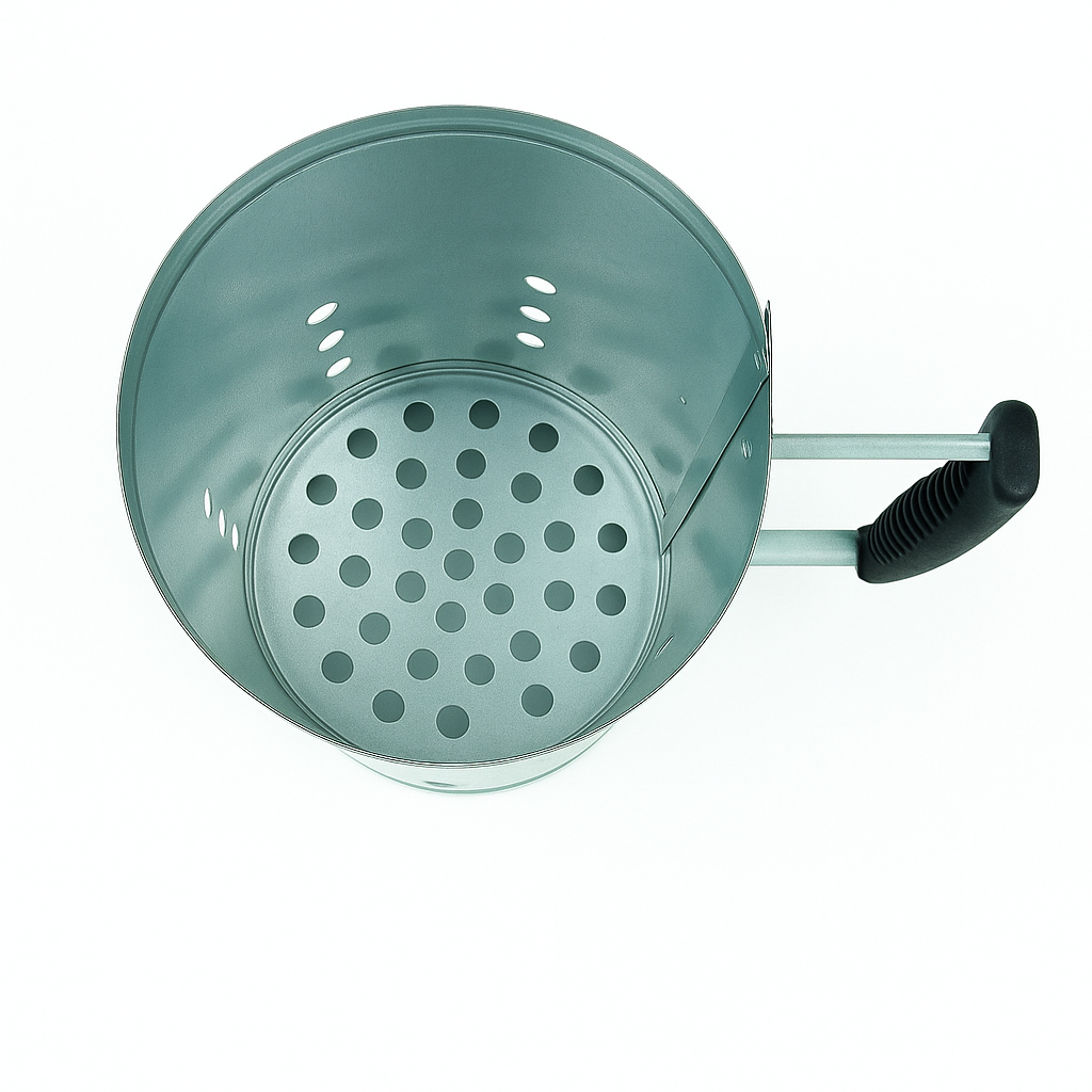 Werking: Vul de grillstarter eenvoudig aan de onderkant met opgerold papier en plaats hem op het grillrooster. Vul het bovenste gedeelte van de container met grillkolen en steek het papier aan via de ventilatieopeningen. Hierdoor worden de briketten in korte tijd gelijkmatig verhit, zodat ze klaar zijn om op de grill te worden gelegd.