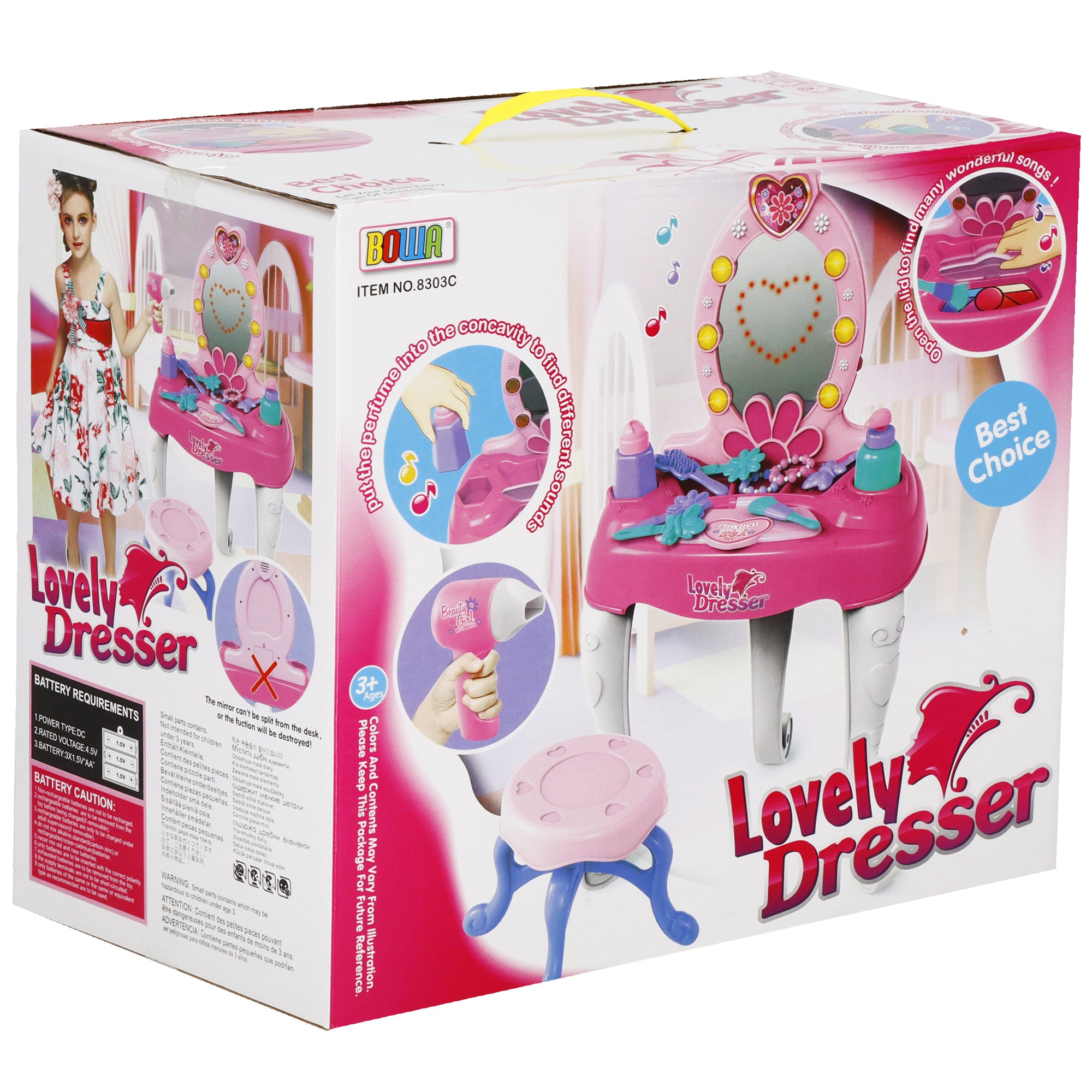 - Licht en Geluid: De Springos Opmaaktafel is voorzien van licht- en geluidsfuncties die de speeltijd nog leuker maken.