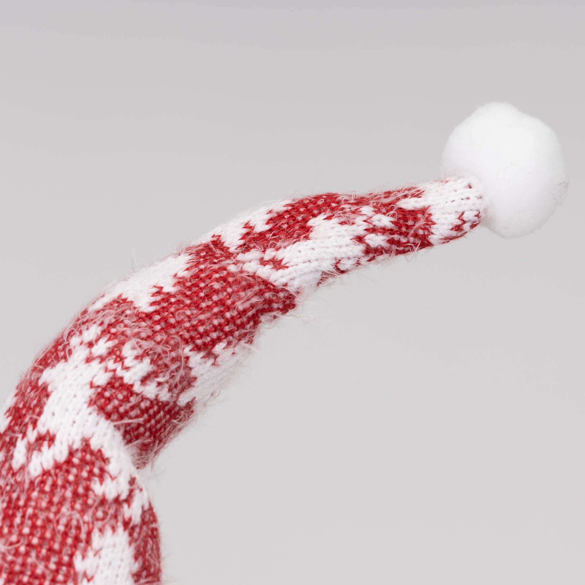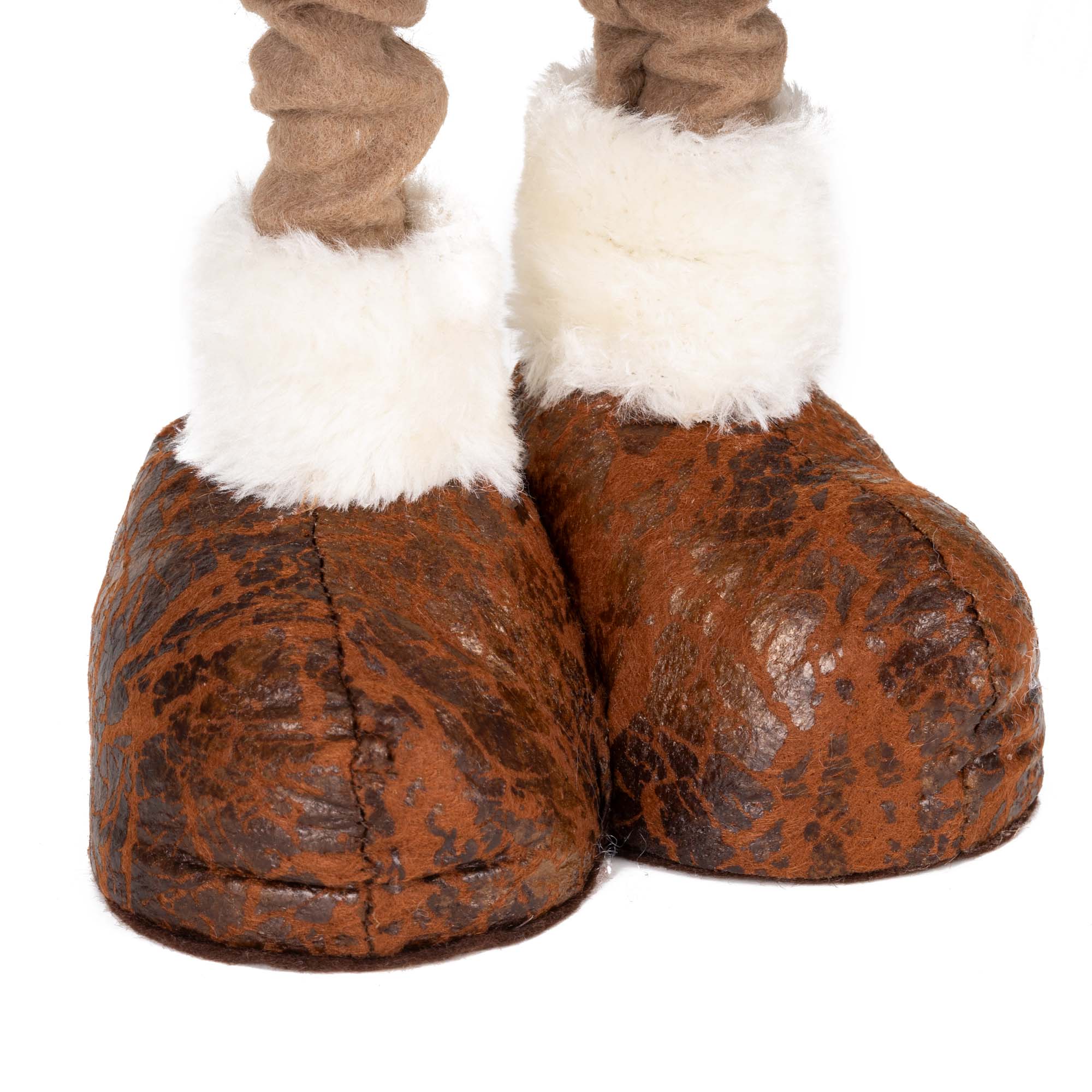 Het rendier draagt een sfeervolle kersttrui met zacht bont, een rode muts met witte pompon en een sjaal met feestelijk patroon. De sjaal is niet permanent bevestigd, waardoor je hem naar wens kunt knopen en schikken. De stevige schoenen met dubbele scharnieren zorgen voor optimale stabiliteit, of je het rendier nu op een plank, vensterbank, ladekast of onder de kerstboom plaatst.