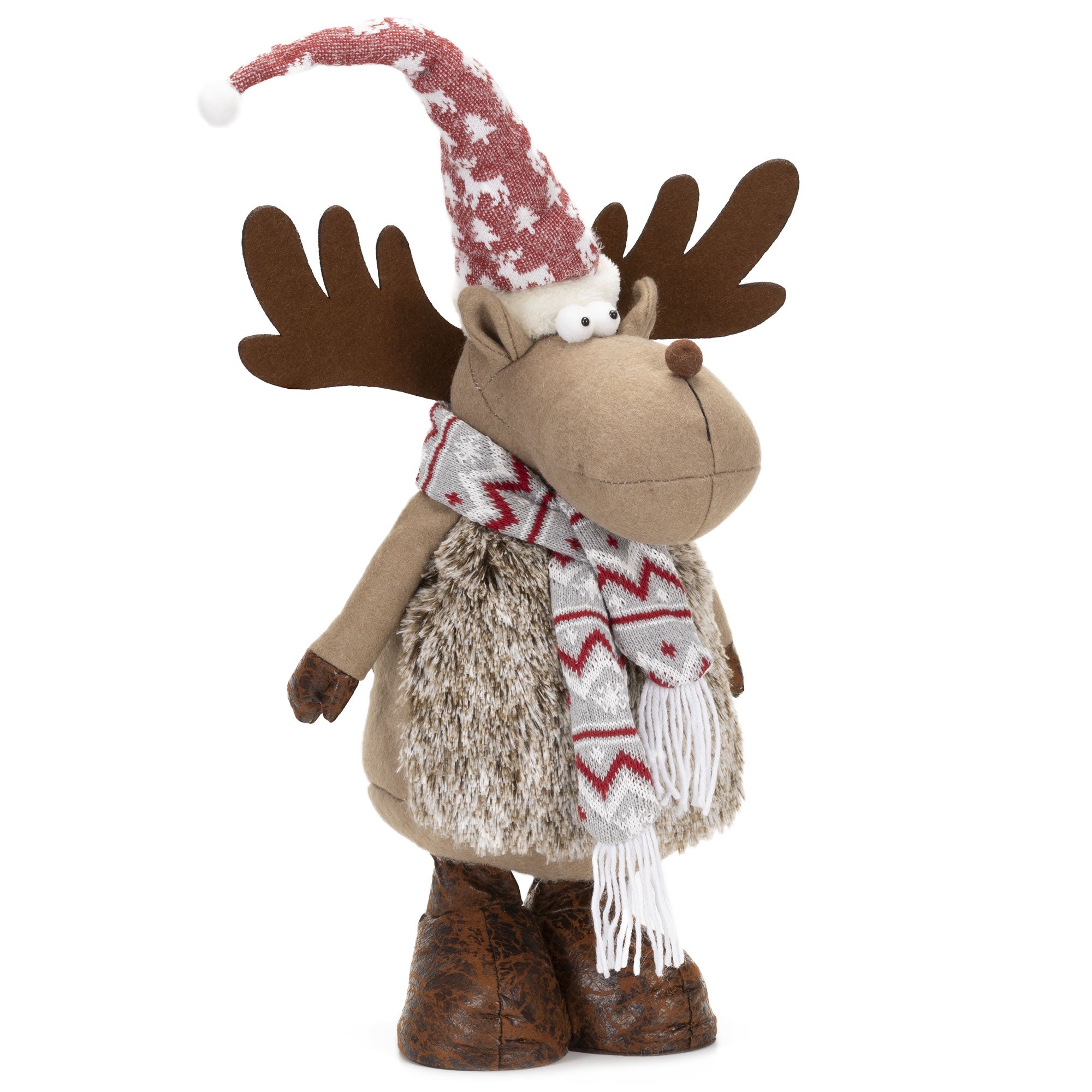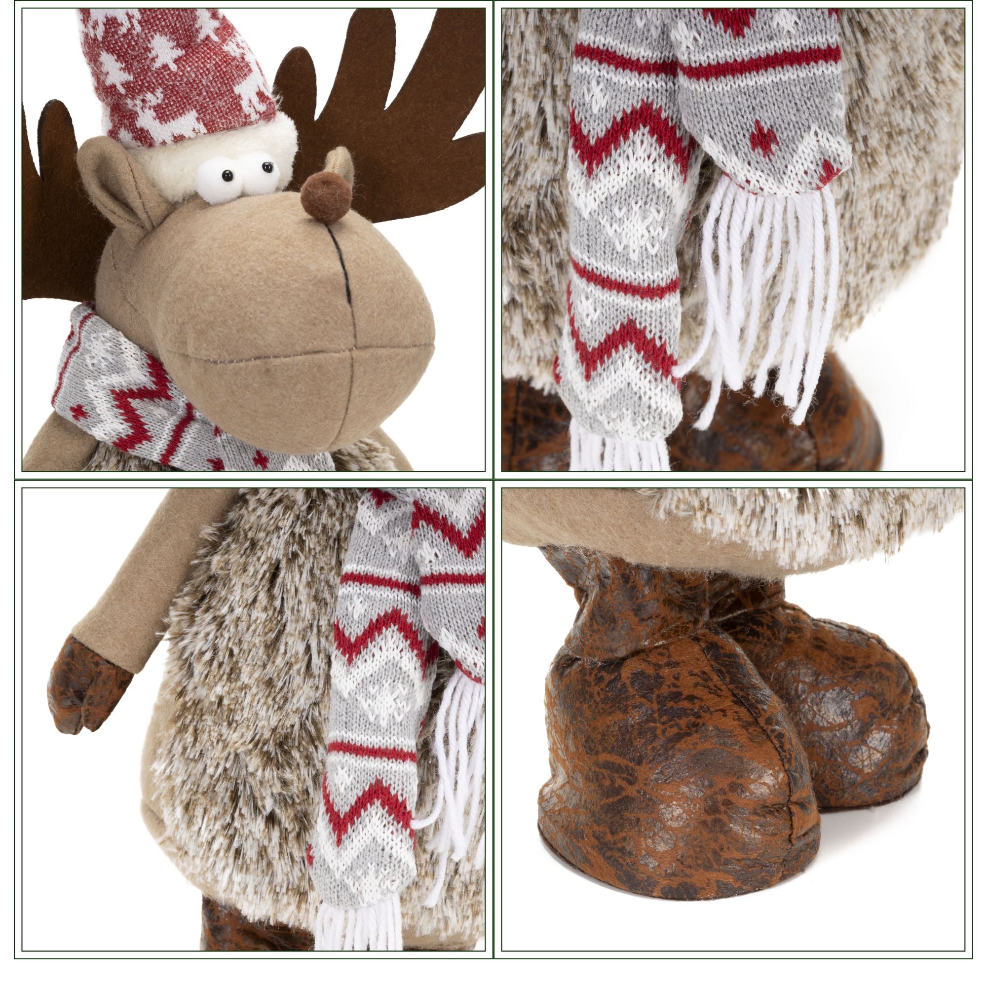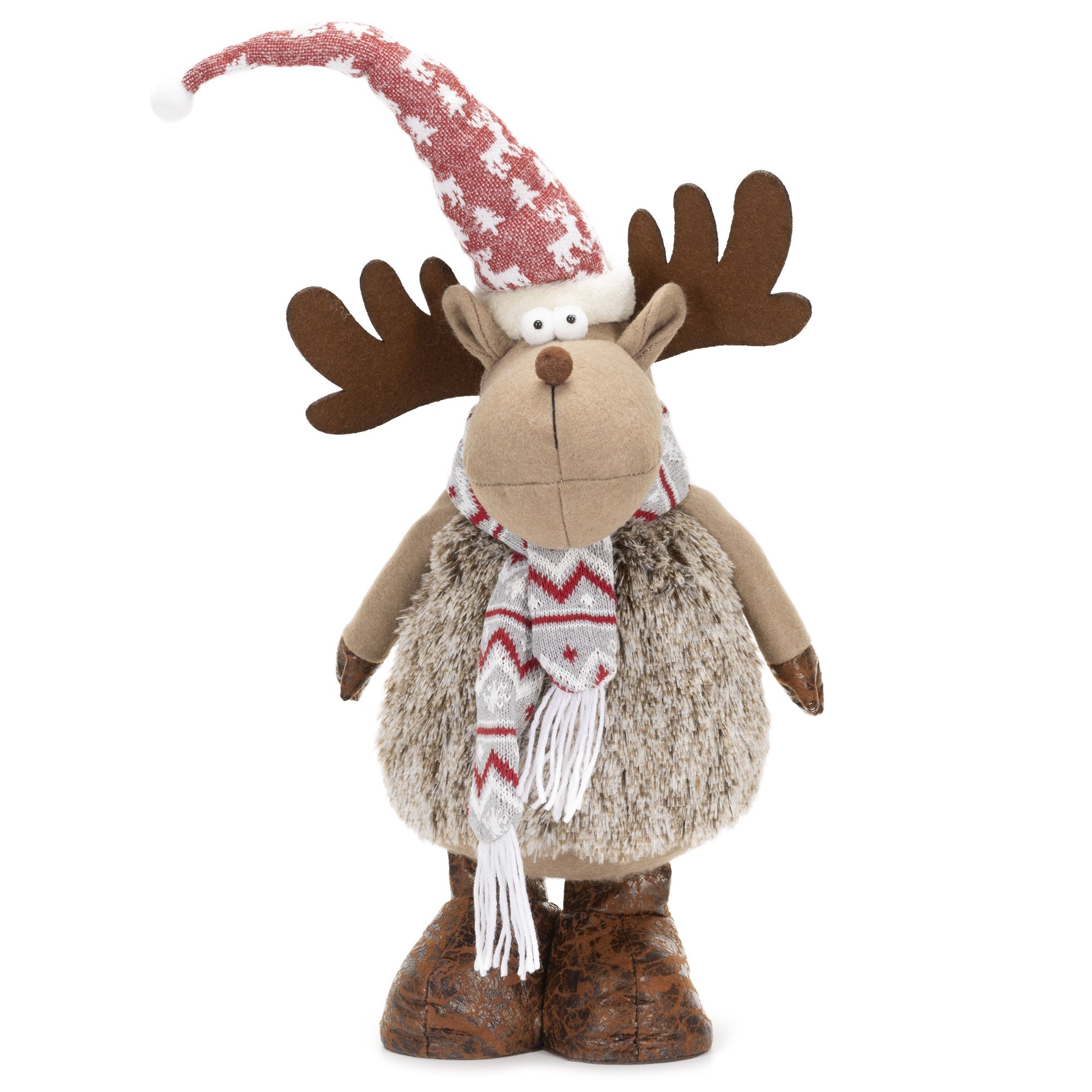 Het kerstrendier is een klassiek symbool van de feestdagen en dit pluchen model brengt direct een warme, magische kerstsfeer in huis. Het beeldje is zorgvuldig vervaardigd uit hoogwaardige materialen en voelt zacht en aangenaam aan. Het rendier draagt een feestelijke trui met bontaccenten, een muts met een witte pompon en een losse sjaal met winterpatroon die je naar wens kunt knopen of schikken. Dankzij de stevige, dubbel gebroken laarzen staat het rendier stabiel op elke ondergrond, zoals een plank, vensterbank, dressoir of onder de kerstboom. Het is een opvallende decoratie die in woonkamers, kantoren of winkels direct de aandacht trekt en het interieur verrijkt met een feestelijke uitstraling.