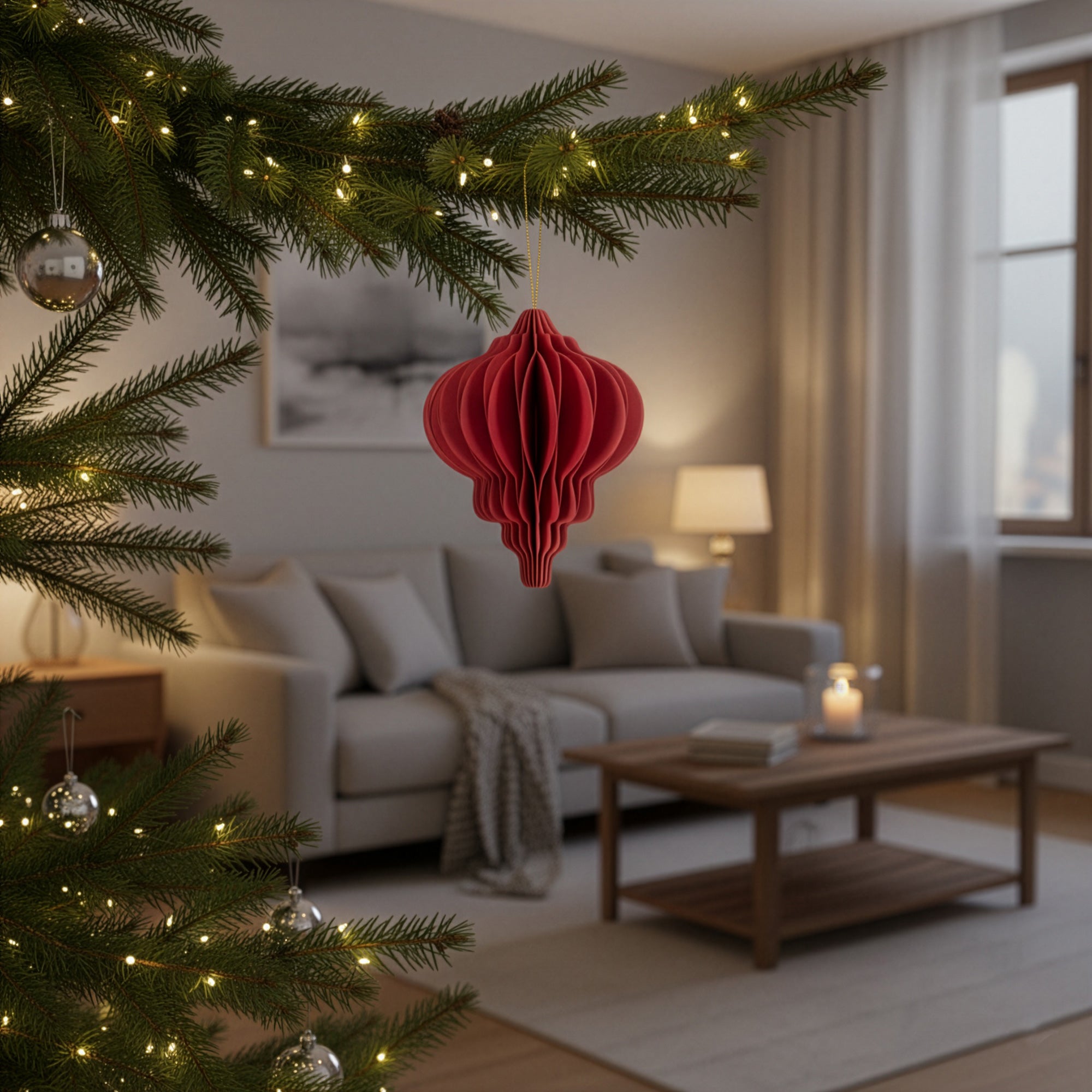 Rode papieren kerstballen – decoraties met unieke diepte en uitstraling