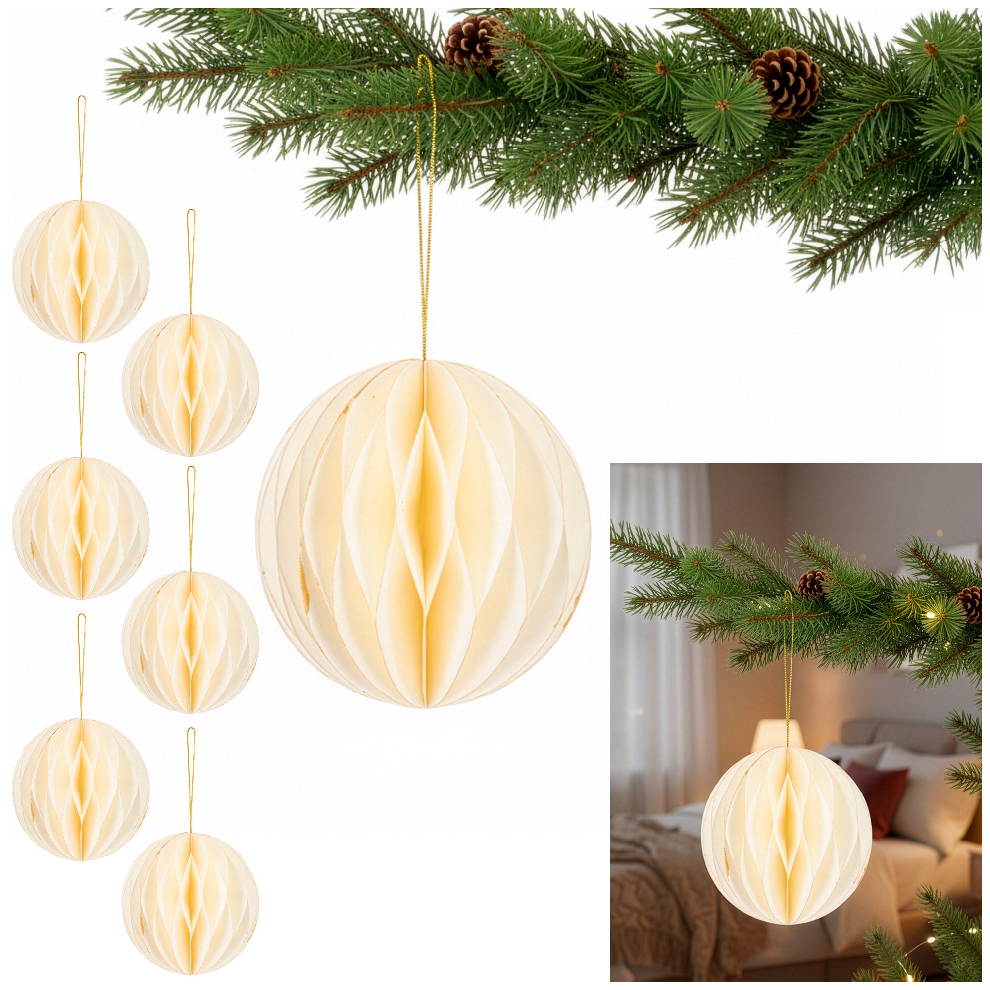 Deze witte papieren kerstballen van Springos zijn een stijlvolle keuze voor iedereen die houdt van minimalisme, elegantie en modern design. Gemaakt van hoogwaardig, stevig papier vormen ze een veilig en lichtgewicht alternatief voor traditionele glazen kerstballen. De zachte, neutrale kleur voegt rust en verfijning toe aan elk interieur en combineert prachtig met natuurlijke decoraties, groen van de kerstboom of gouden accenten.