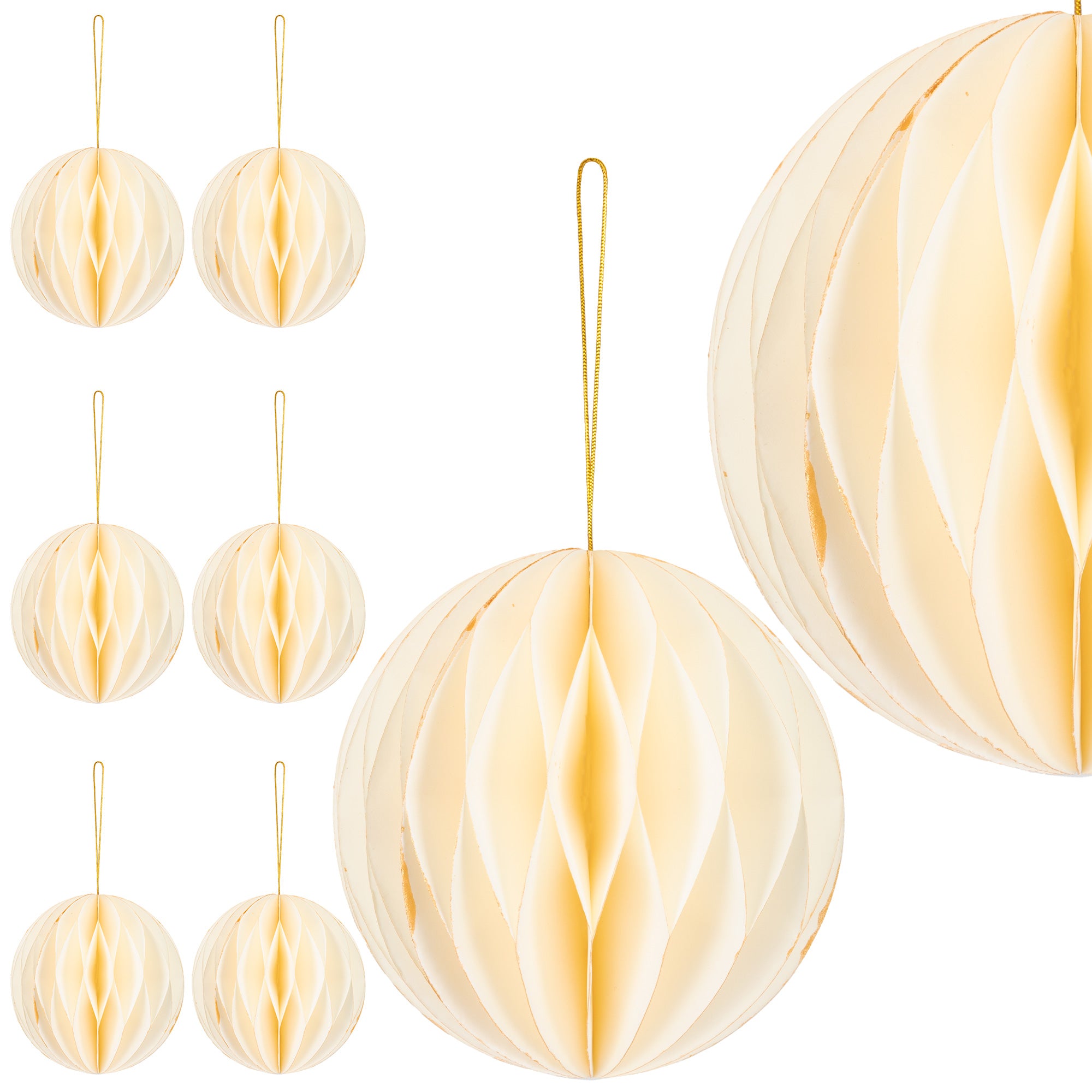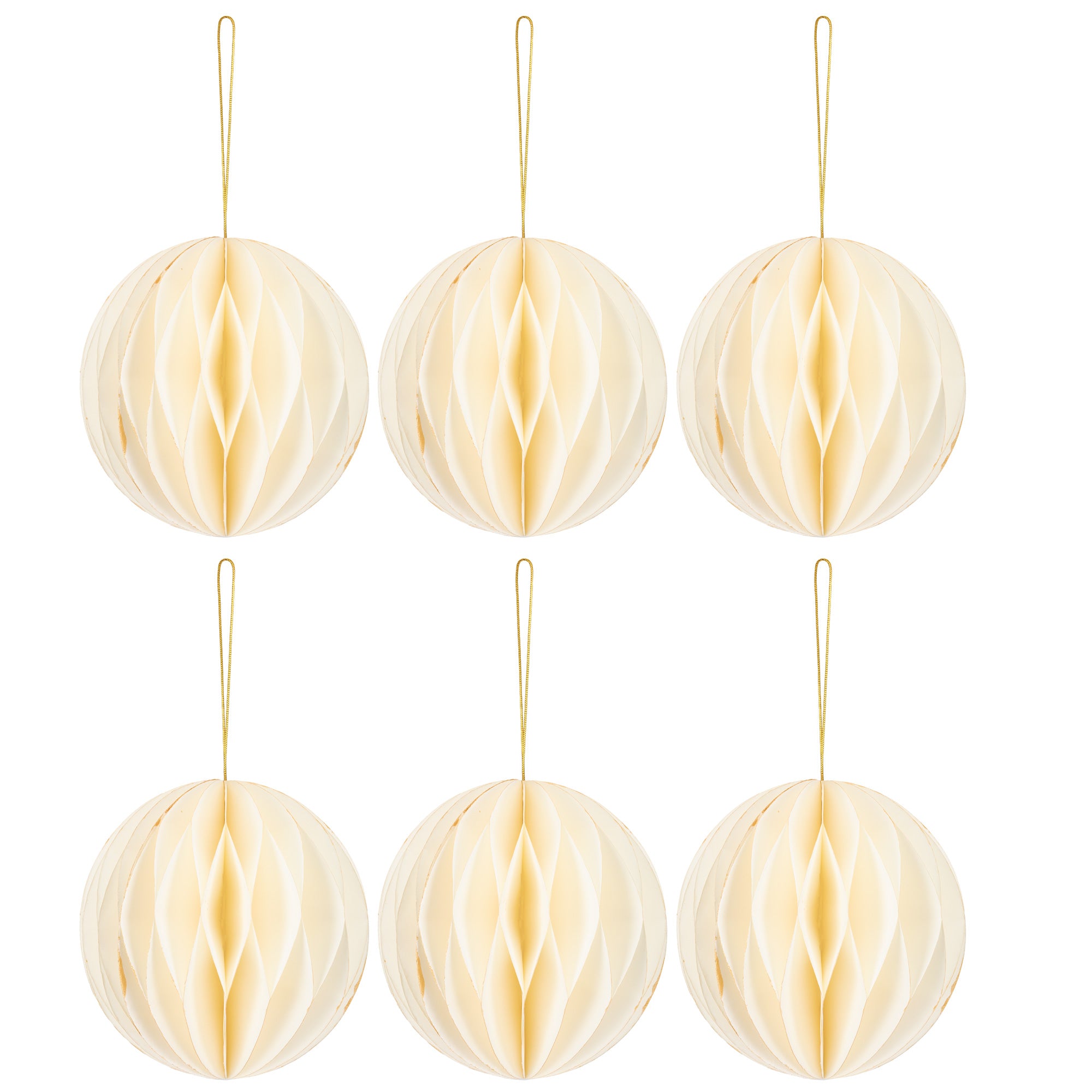 De set bestaat uit zes papieren kerstballen waarmee u eenvoudig een harmonieus geheel creëert in huis, op kantoor of in commerciële ruimtes. Elke kerstbal is uitgerust met een magnetische sluiting, waardoor hij moeiteloos in een perfecte bolvorm kan worden gemonteerd. De meegeleverde gouden ophangkoordjes maken de decoraties direct gebruiksklaar. Deze kerstballen zijn geschikt voor kerstbomen, feestelijke slingers, kransen, ramen en tafelarrangementen.