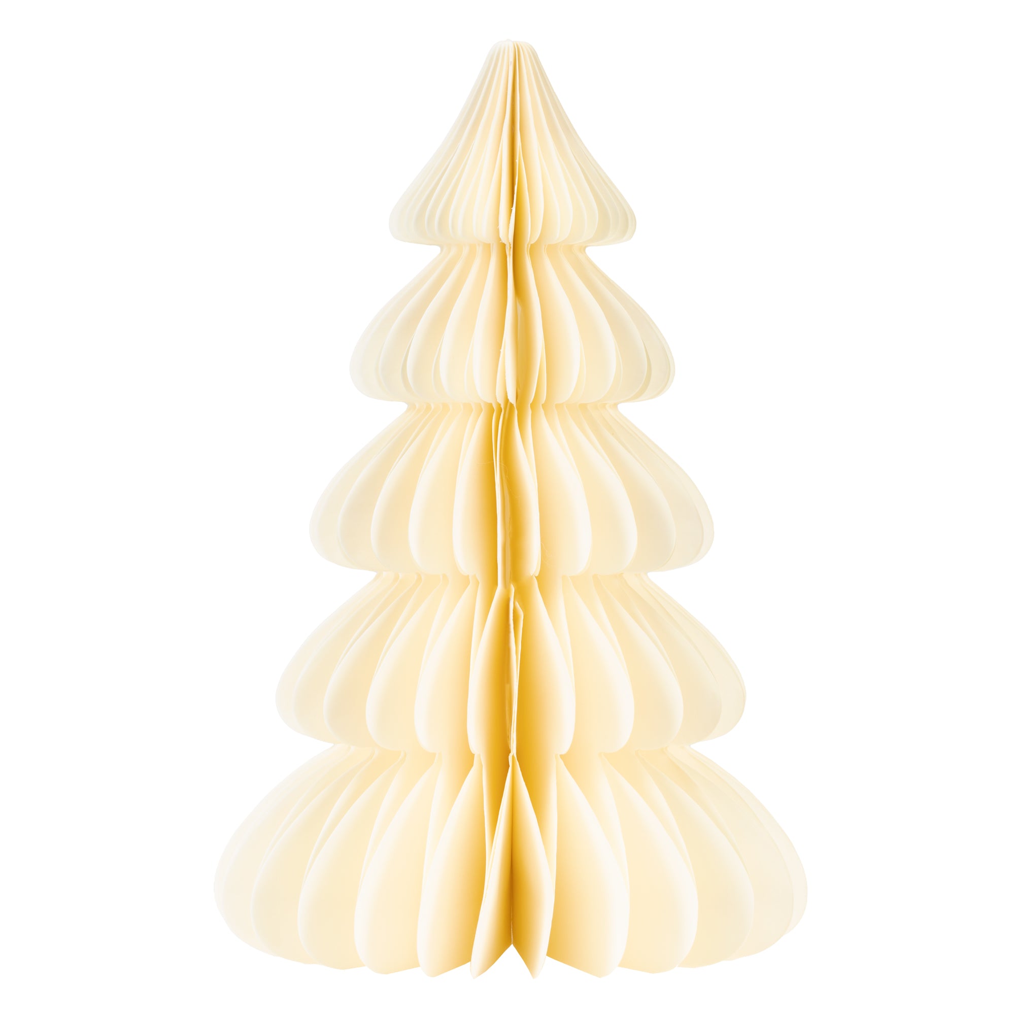 Deze papieren kerstboom vormt een stijlvolle en eigentijdse toevoeging aan uw kerstdecoratie. Dankzij de driedimensionale, accordeonvormige structuur heeft de boom een lichte, moderne uitstraling die direct in het oog springt. Het hoogwaardige papier zorgt voor stabiliteit en een nette afwerking, waardoor de boom zowel afzonderlijk als in combinatie met andere decoratieve elementen prachtig tot zijn recht komt.