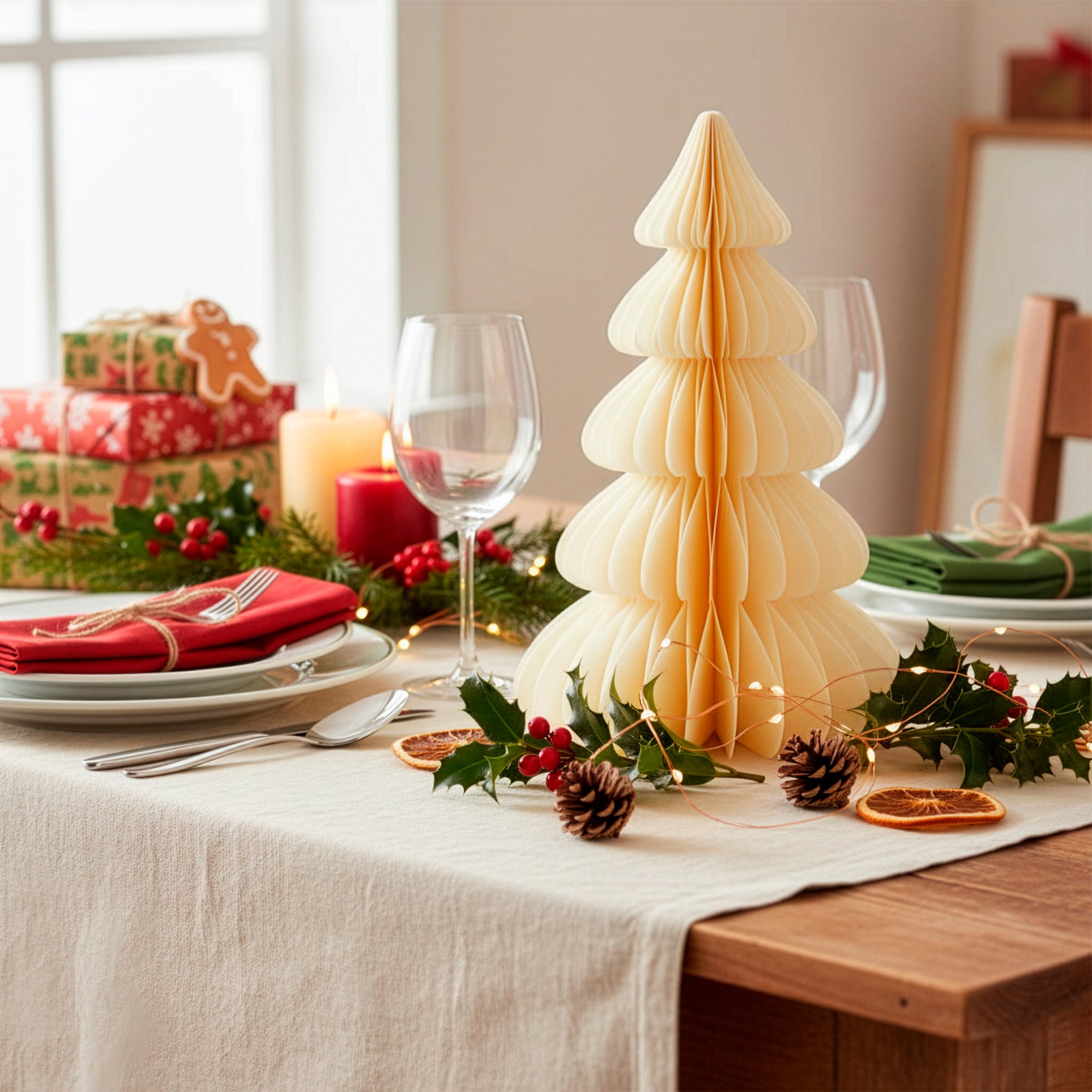 De papieren kerstboom is veelzijdig inzetbaar en ideaal voor woonkamers, kantoren, restaurants of feesttafels. Zijn minimalistische karakter sluit perfect aan bij moderne en Scandinavische interieurs. Door de opvouwbare constructie kan de decoratie na de feestdagen eenvoudig worden ingeklapt en compact worden opgeborgen. De duurzame materialen en tijdloze vormgeving maken dit tot een decoratie die jarenlang opnieuw gebruikt kan worden.