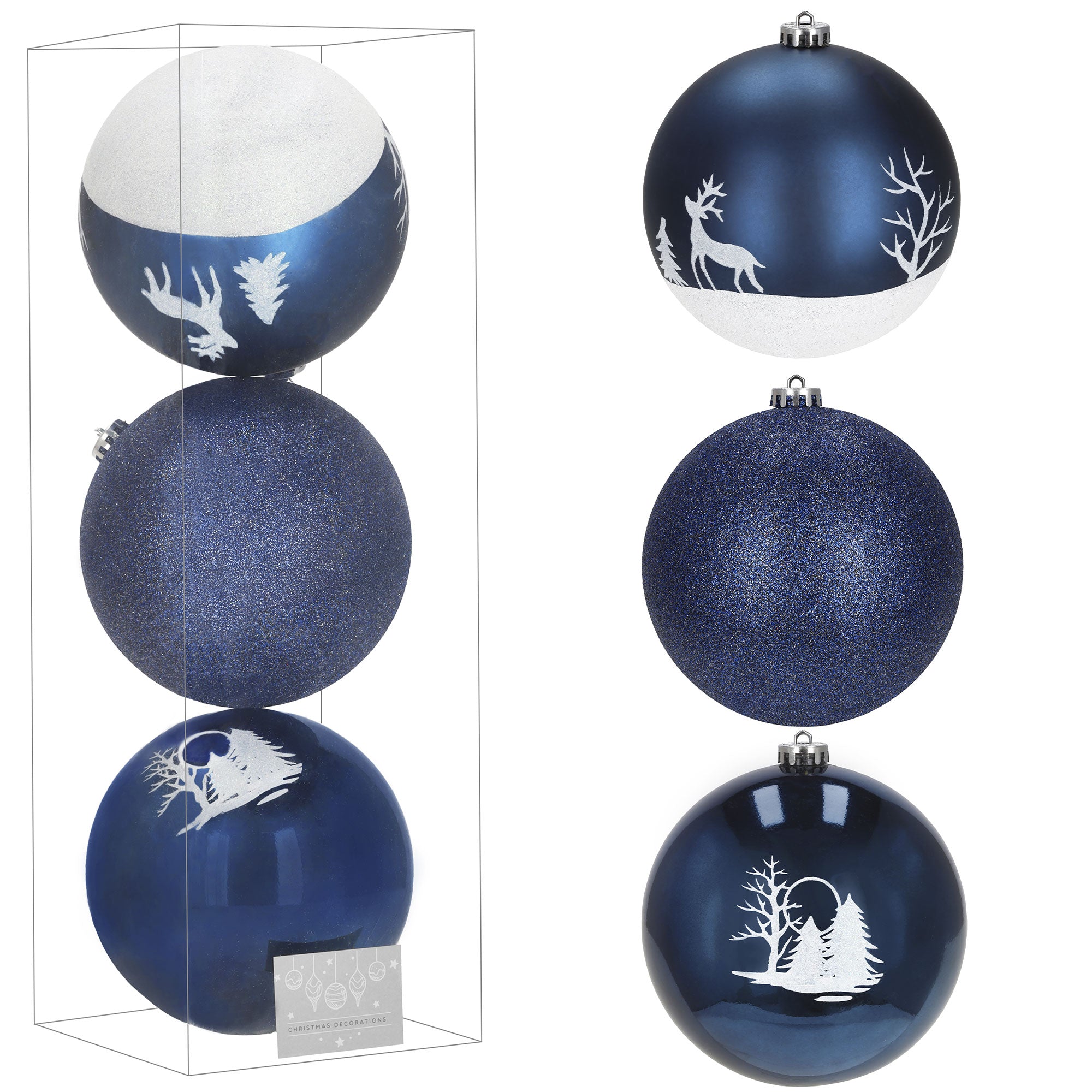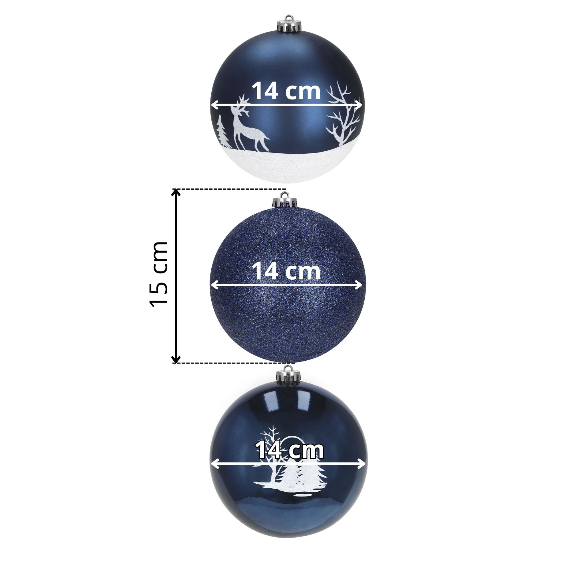 Deze set van drie grote kerstballen, met een diameter van 14 cm, is ideaal voor wie op zoek is naar een opvallende en elegante decoratie. Het royale formaat zorgt ervoor dat ze direct de aandacht trekken, of ze nu in de kerstboom hangen of als onderdeel van een tafel- of wanddecoratie worden gebruikt. Ze brengen volume en stijl in elke ruimte en versterken de feestelijke sfeer op een subtiele maar indrukwekkende manier.