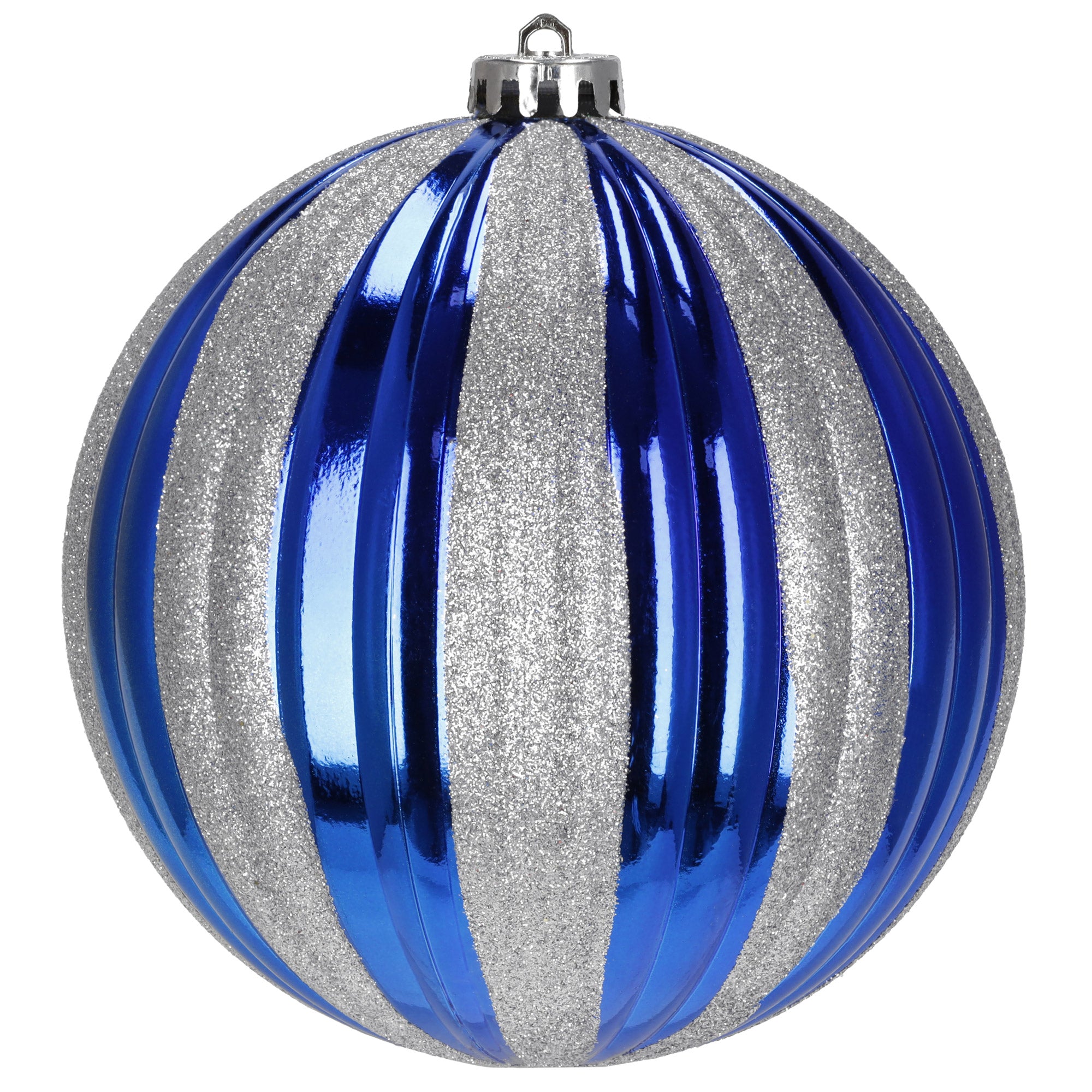 - 1x glanzende kerstbal met zilveren glitterstrepen