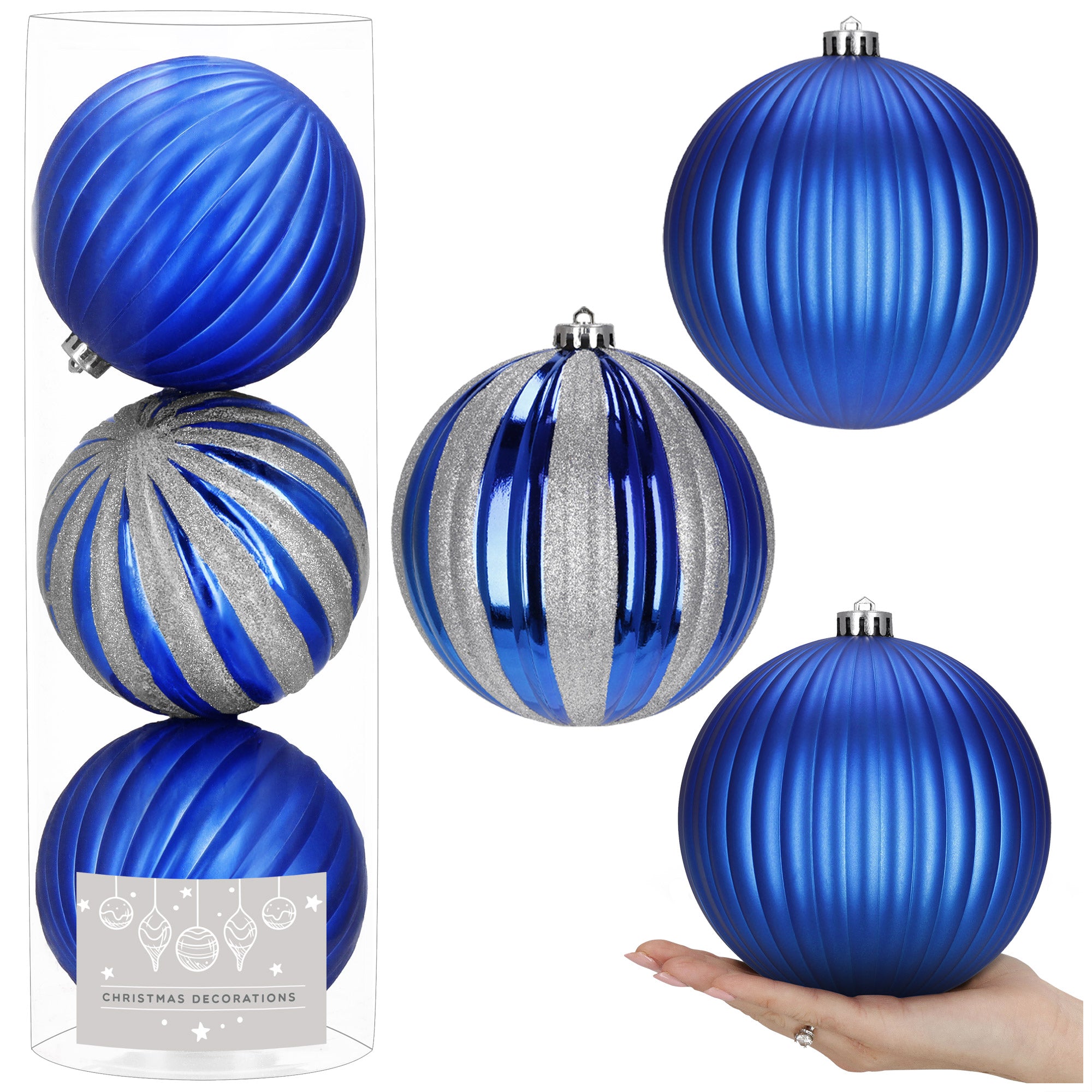Deze set van drie grote kerstballen met een diameter van 15 cm is ideaal voor wie op zoek is naar een stijlvolle en opvallende kerstversiering. Dankzij hun royale formaat vormen ze direct een blikvanger, zowel in de kerstboom als in vrijstaande decoraties. Ze zijn perfect voor ruime interieurs, grote kerstbomen of als centrale elementen in een decoratieve schaal met takken, kaarsen en dennenappels. De elegante uitstraling past moeiteloos bij zowel klassieke als moderne stijlen en geeft elke ruimte een luxueuze, feestelijke sfeer.