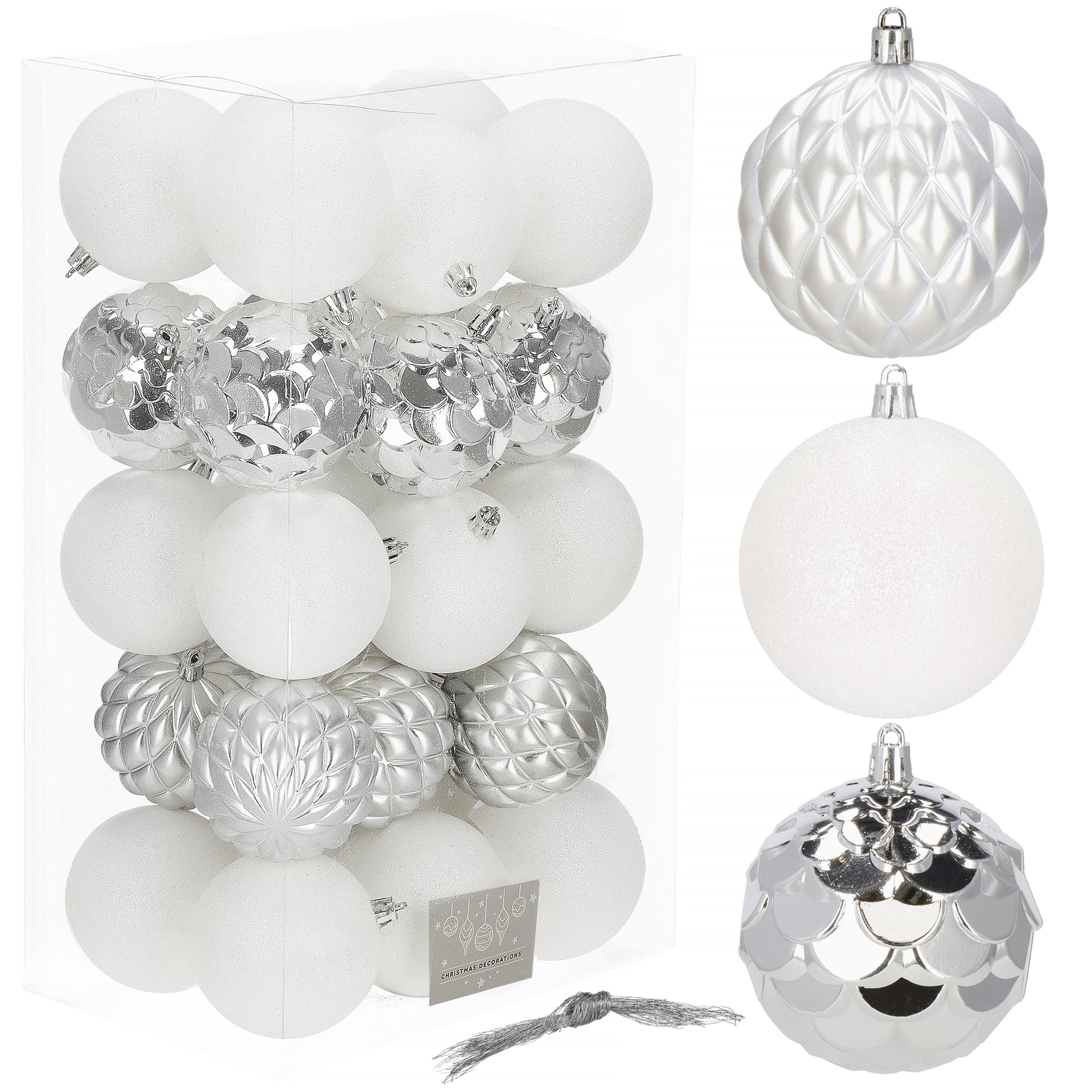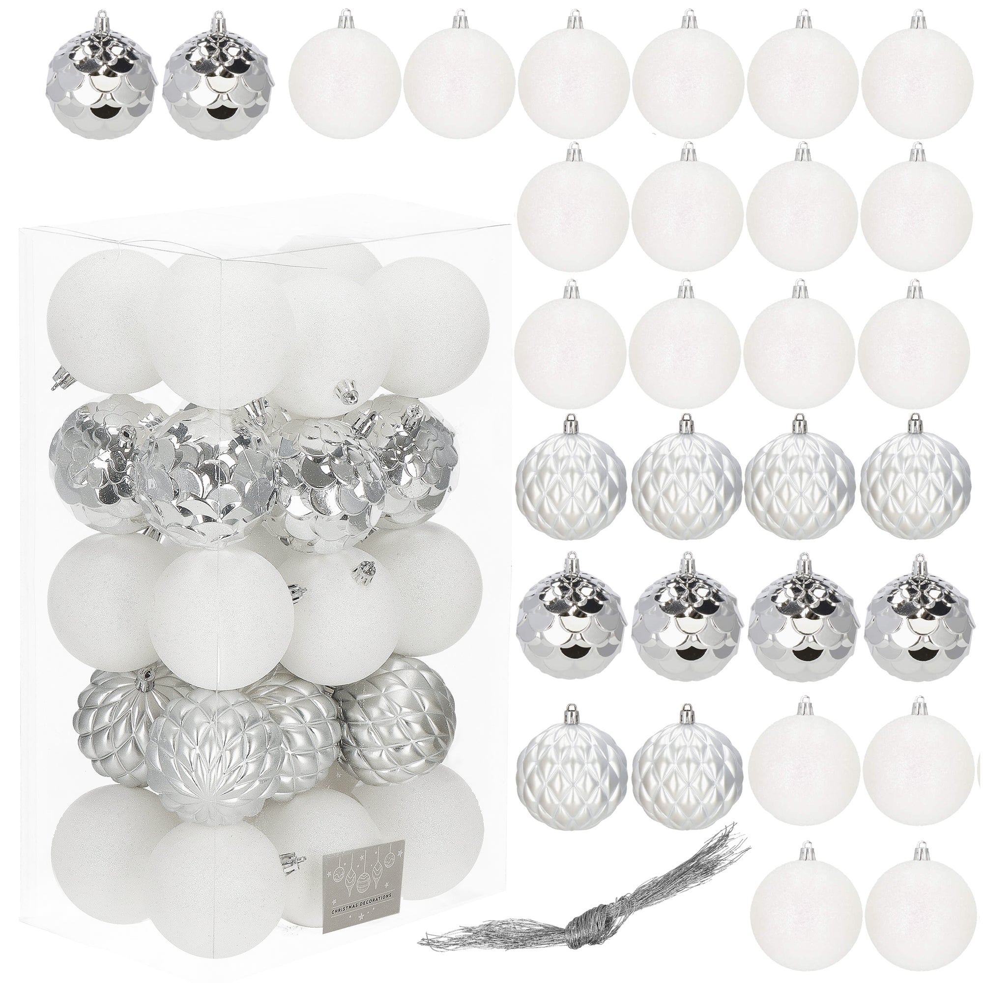 Versier je kerstboom in stijl met de Springos® kerstballen, de ideale keuze voor iedereen die op zoek is naar iets bijzonders. Gemaakt van duurzaam, onbreekbaar plastic, zijn deze decoraties ontworpen om jarenlang mee te gaan, terwijl ze veiligheid en schoonheid bieden. Met een set van 30 kerstballen creëer je eenvoudig een harmonieuze en elegante uitstraling in je kerstboom. De versieringen zijn geschikt voor verschillende stijlen, of je nu een klassieke, moderne of rustieke boom wilt decoreren. Dankzij de witte en zilveren tinten passen ze perfect bij andere decoraties, waardoor een feestelijke sfeer vol glans en verfijning ontstaat. Met een diameter van 8 cm zijn de kerstballen groot genoeg om op te vallen, zonder de balans van de gehele compositie te verstoren.