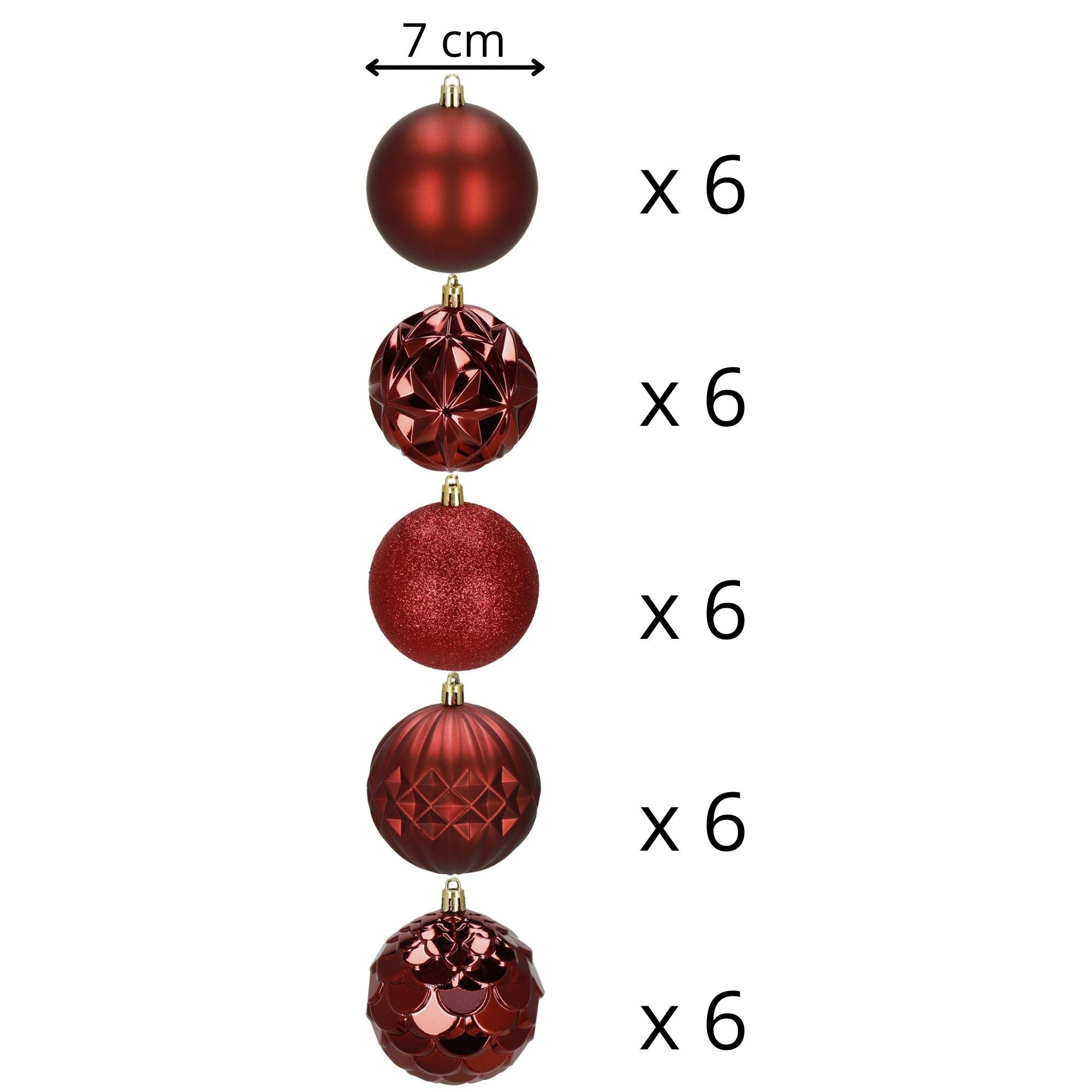 Deze set is niet alleen perfect voor de kerstboom, maar kan ook gebruikt worden voor kransen, slingers, tafelstukken en wanddecoraties. De 30 stuks maken het mogelijk om een samenhangend en elegant geheel te creëren in meerdere ruimtes. Bovendien bergt u de kerstballen gemakkelijk op, zodat ze elk jaar opnieuw gebruikt kunnen worden.