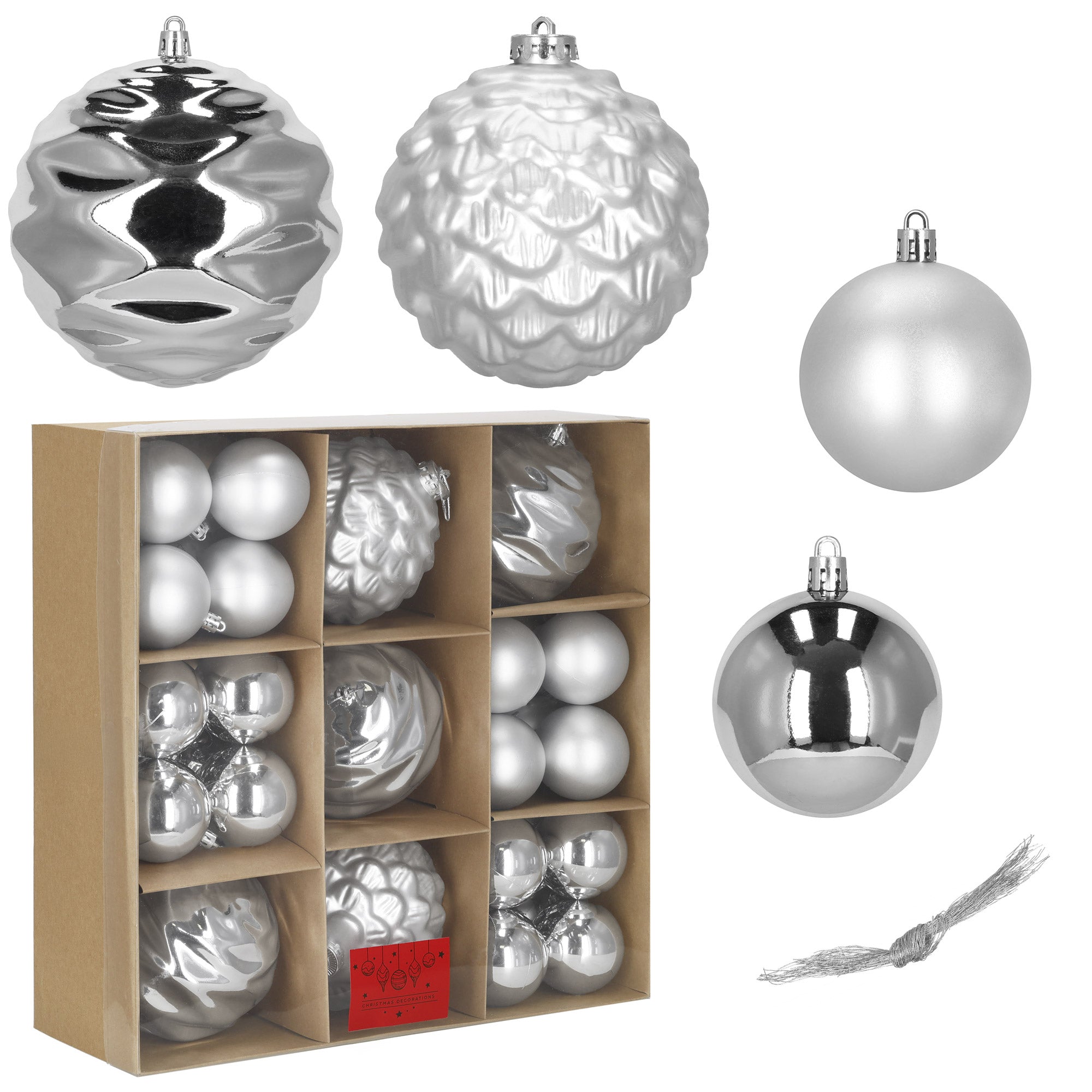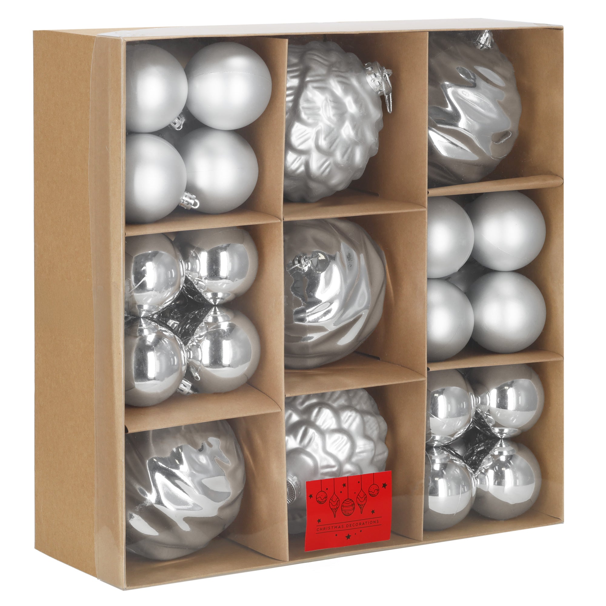 Zilveren elegantie voor uw kerstboom – set van 37 moderne ornamenten