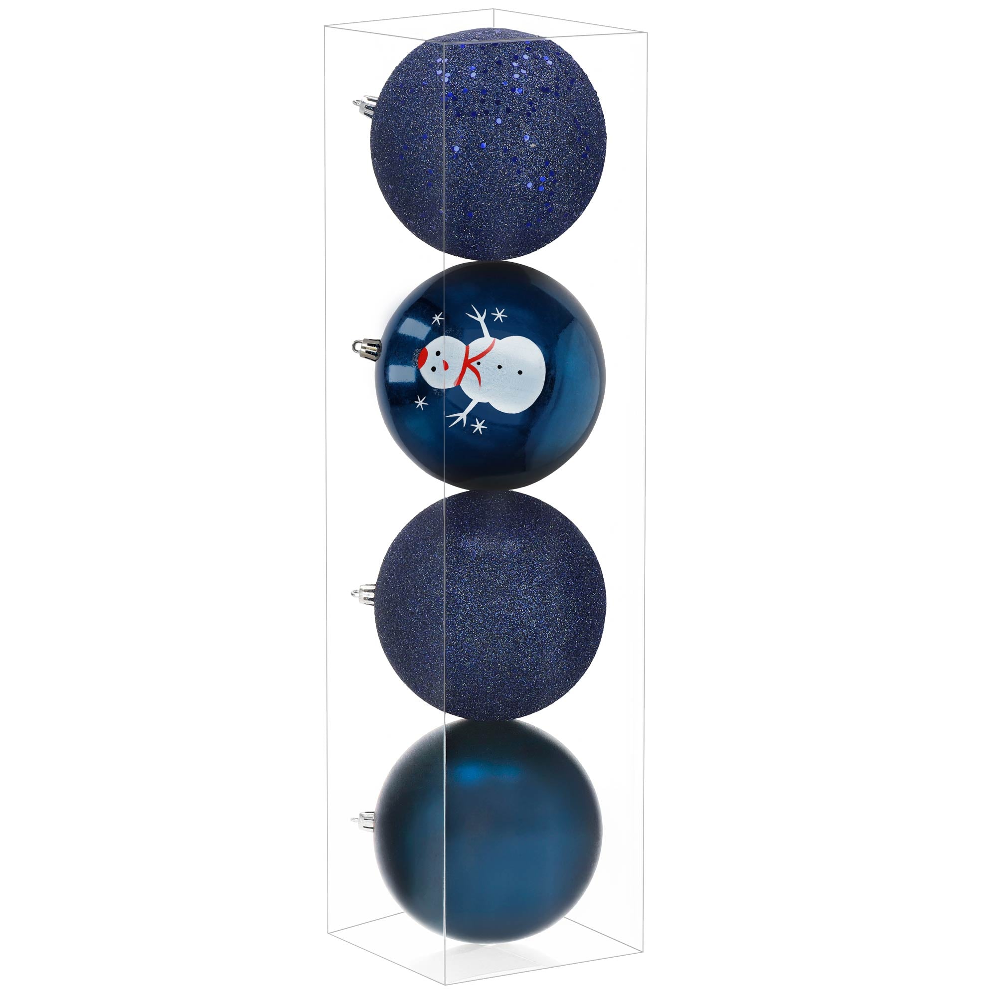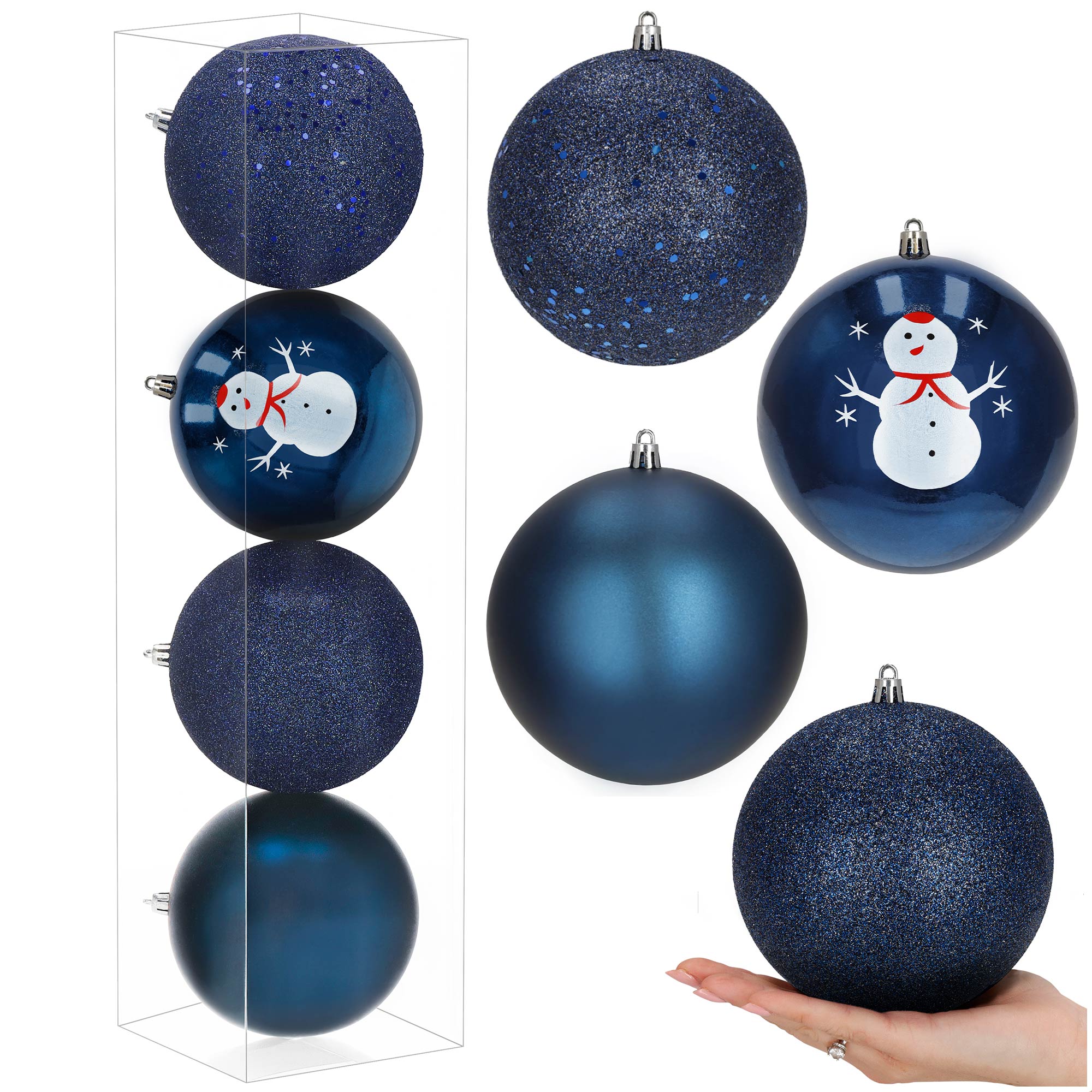 Deze set van vier marineblauwe kerstballen met een diameter van 12 cm brengt direct een gevoel van rust, luxe en feestelijke magie in uw interieur. De diepe kleur creëert een chique uitstraling en vormt een prachtig contrast met kerstverlichting en andere decoraties in tinten zoals wit, zilver of goud. Perfect voor wie op zoek is naar verfijnde decoratie die zowel modern als tijdloos is.