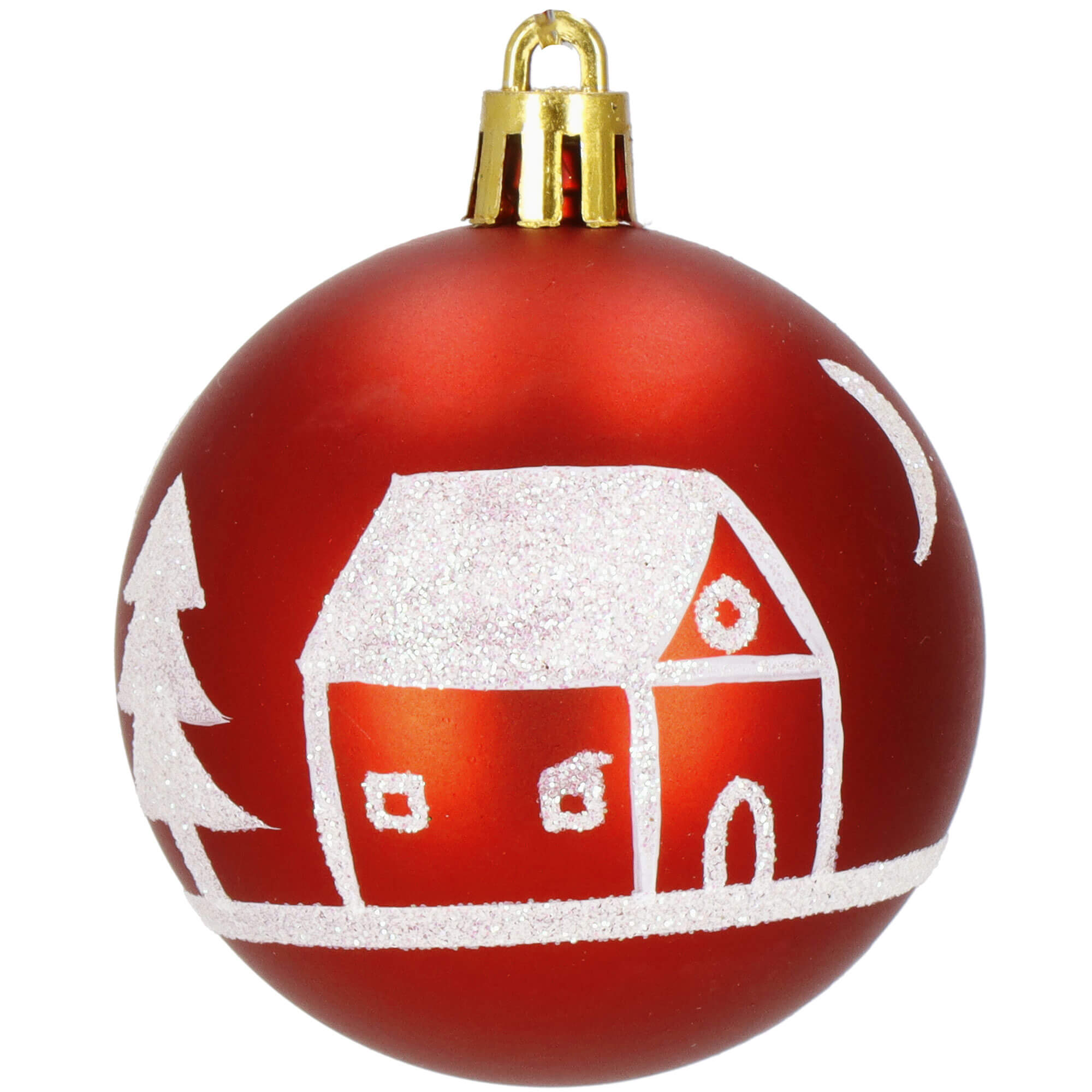 - 2x Matte kerstbal - rood met glitterlandschap - 6 cm