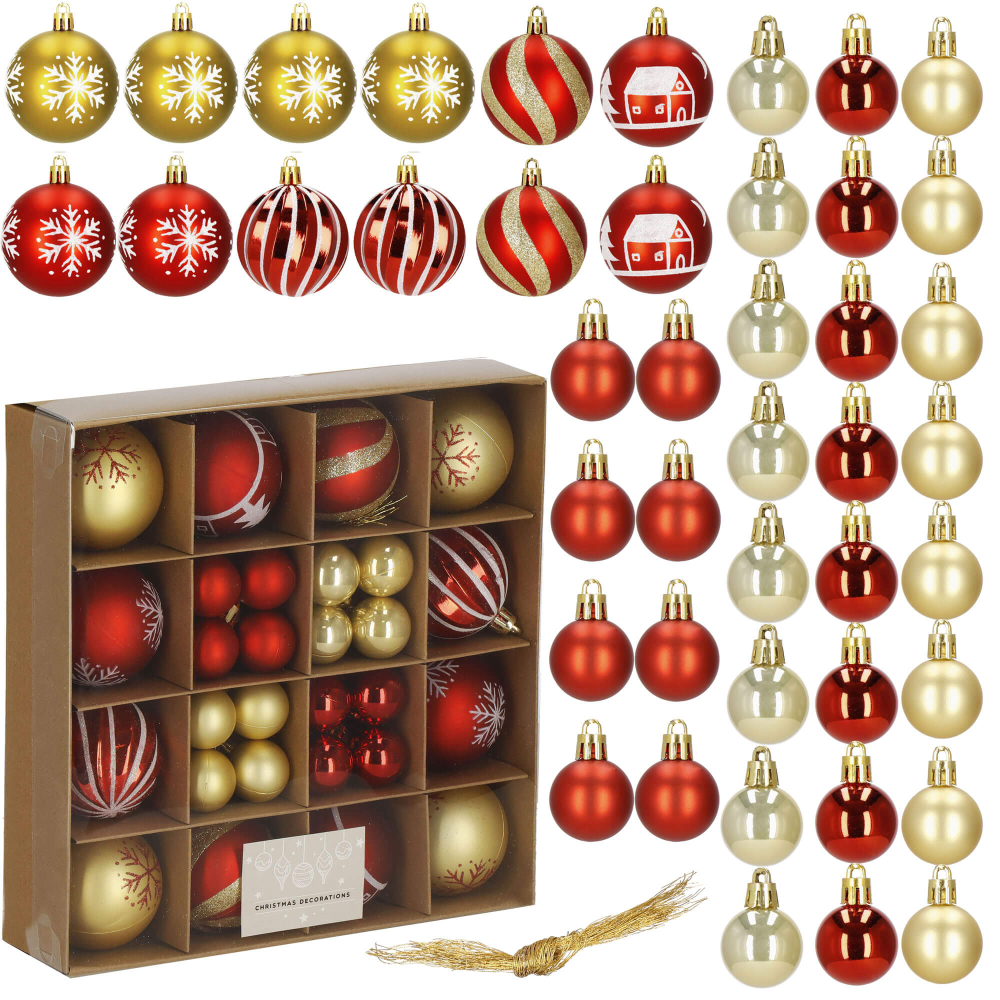 Ervaar de betovering van Kerstmis met de kerstballen van Springos®. Deze set van 42 stuks brengt een feestelijke sfeer in je huis door moderne kleuren en patronen te combineren met een klassieke vorm. Elke kerstbal, vervaardigd uit hoogwaardig kunststof, biedt zowel veiligheid als duurzaamheid. Het unieke kleurenpalet, variërend van rood tot goud, voegt een vleugje elegantie toe aan elk interieur en creëert een feestelijk karakter. De sprankelende glitter- en glinsterafwerkingen maken deze kerstballen het perfecte accent voor zowel traditionele als eigentijdse decoraties.