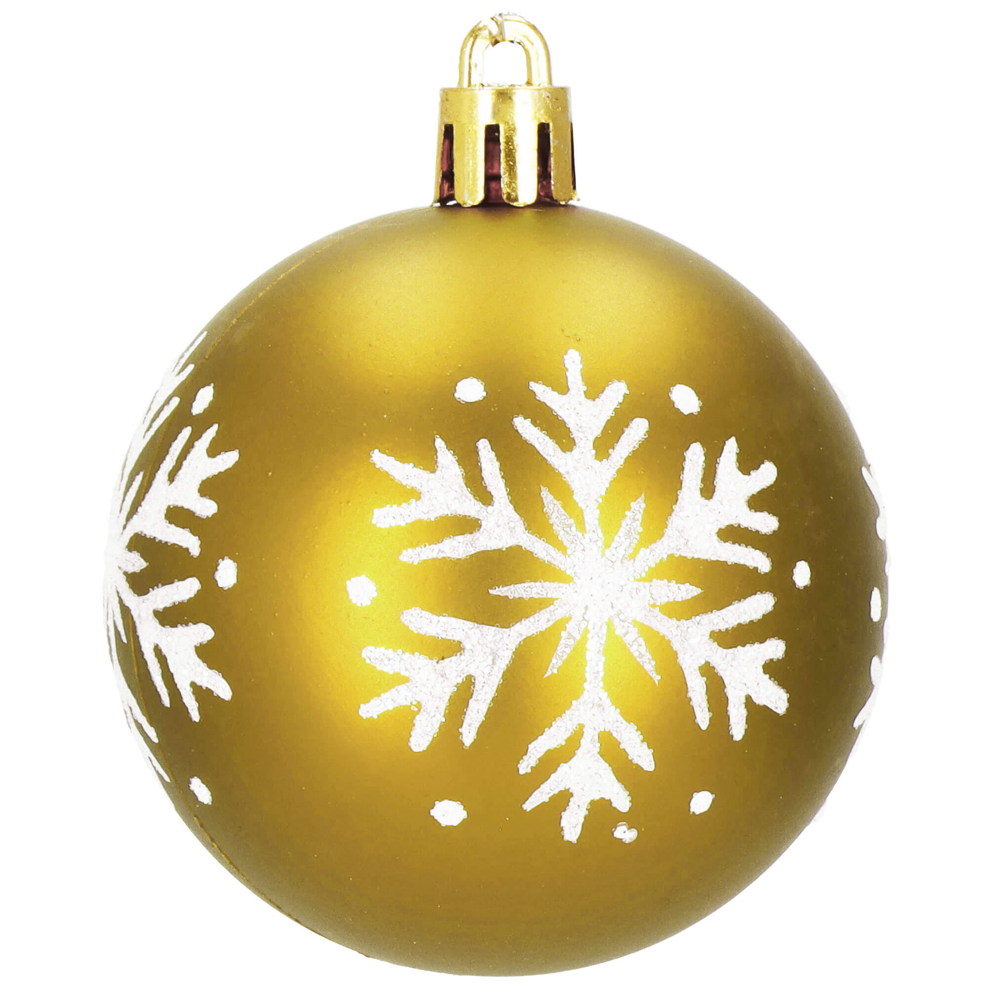 4x Matte kerstbal - goud met rode glittersneeuwvlok - 6 cm