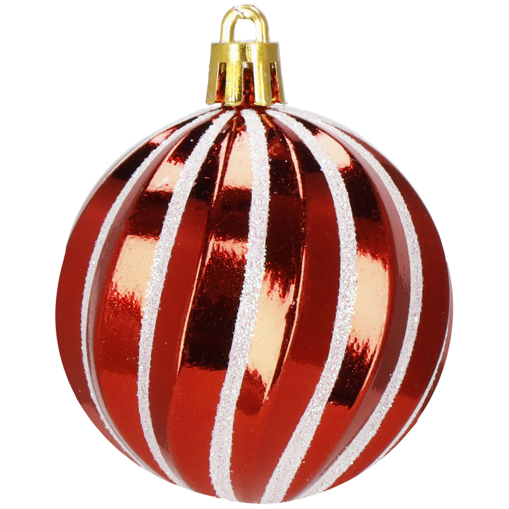 - 2x Gestreepte glanzende kerstbal - rood met glitterstrepen - 6 cm
