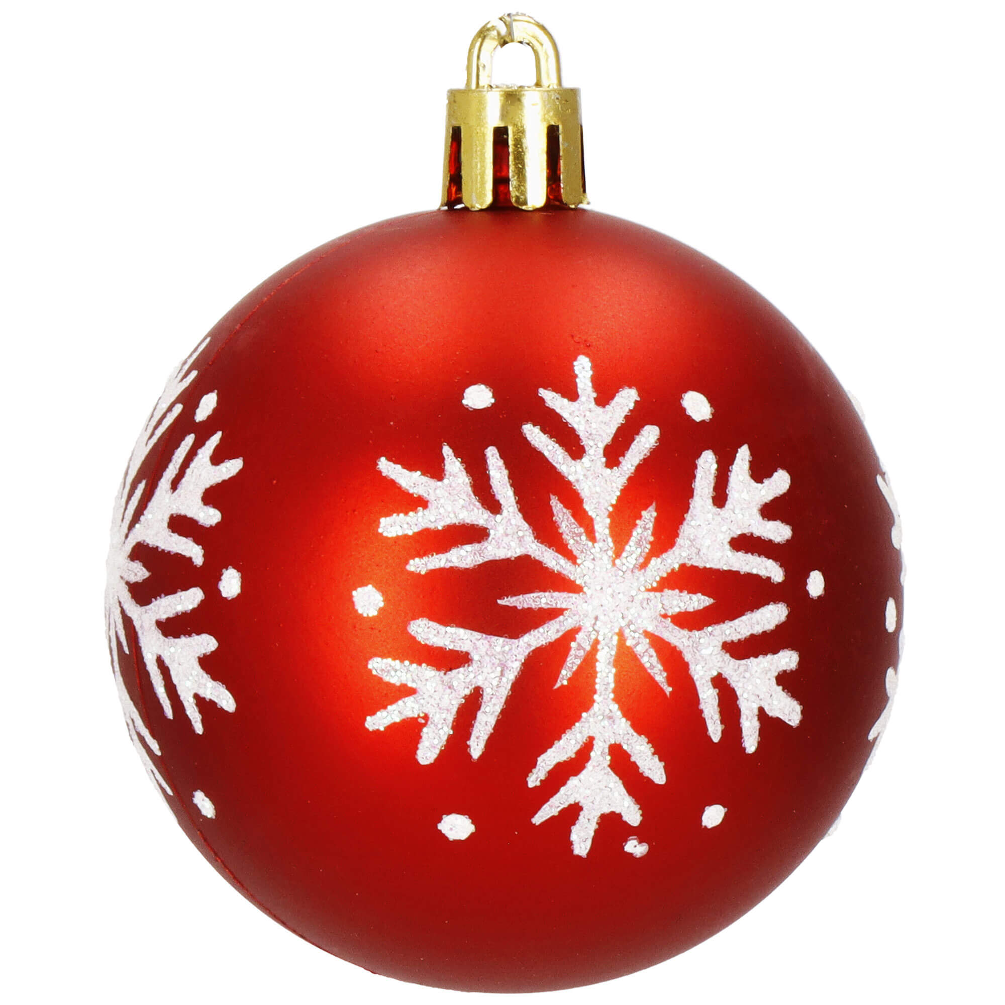- 2x Matte kerstbal - rood met witte glitter sneeuwvlokken - 6 cm