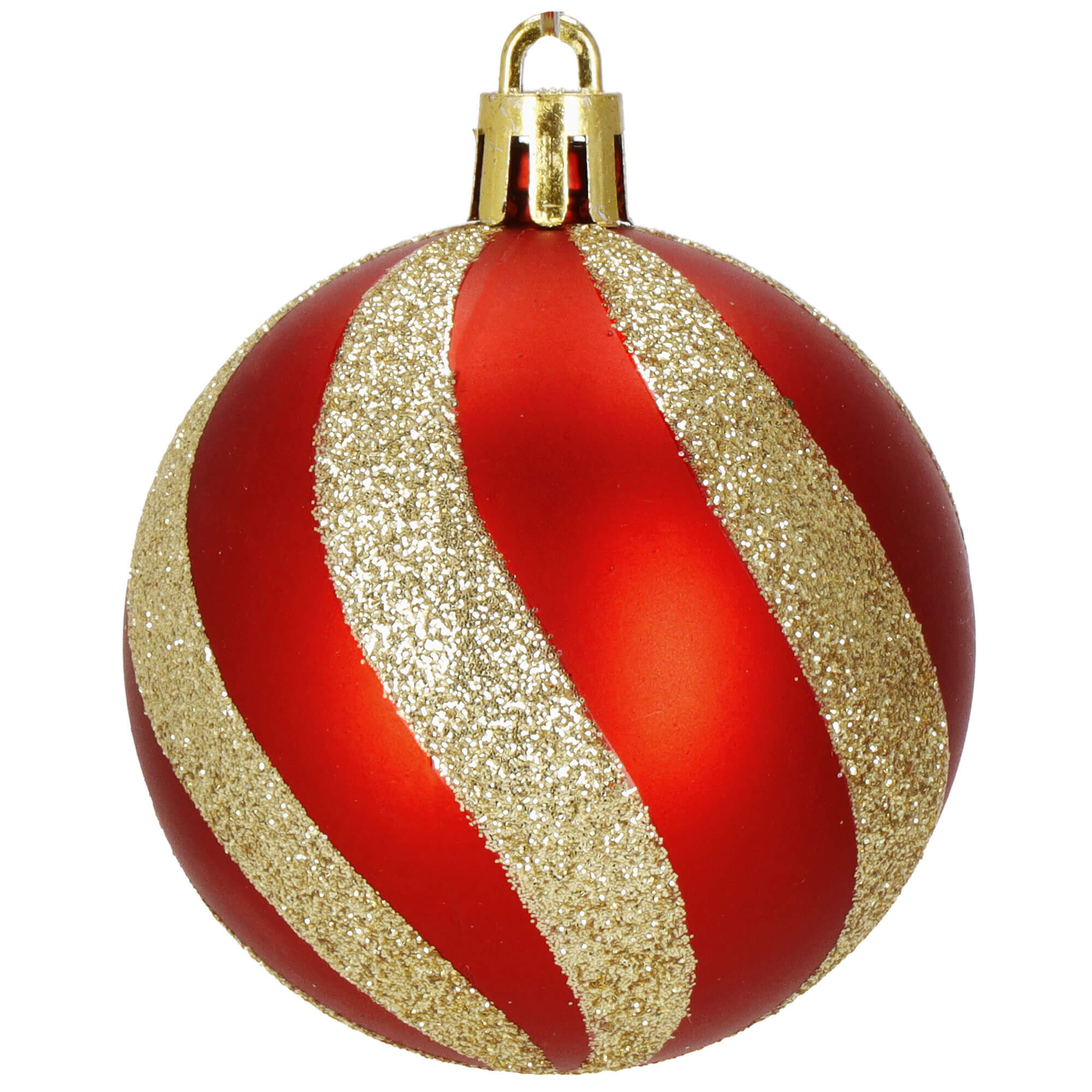 - 2x Matte kerstbal - rood met gouden glitterstrepen - 6 cm
