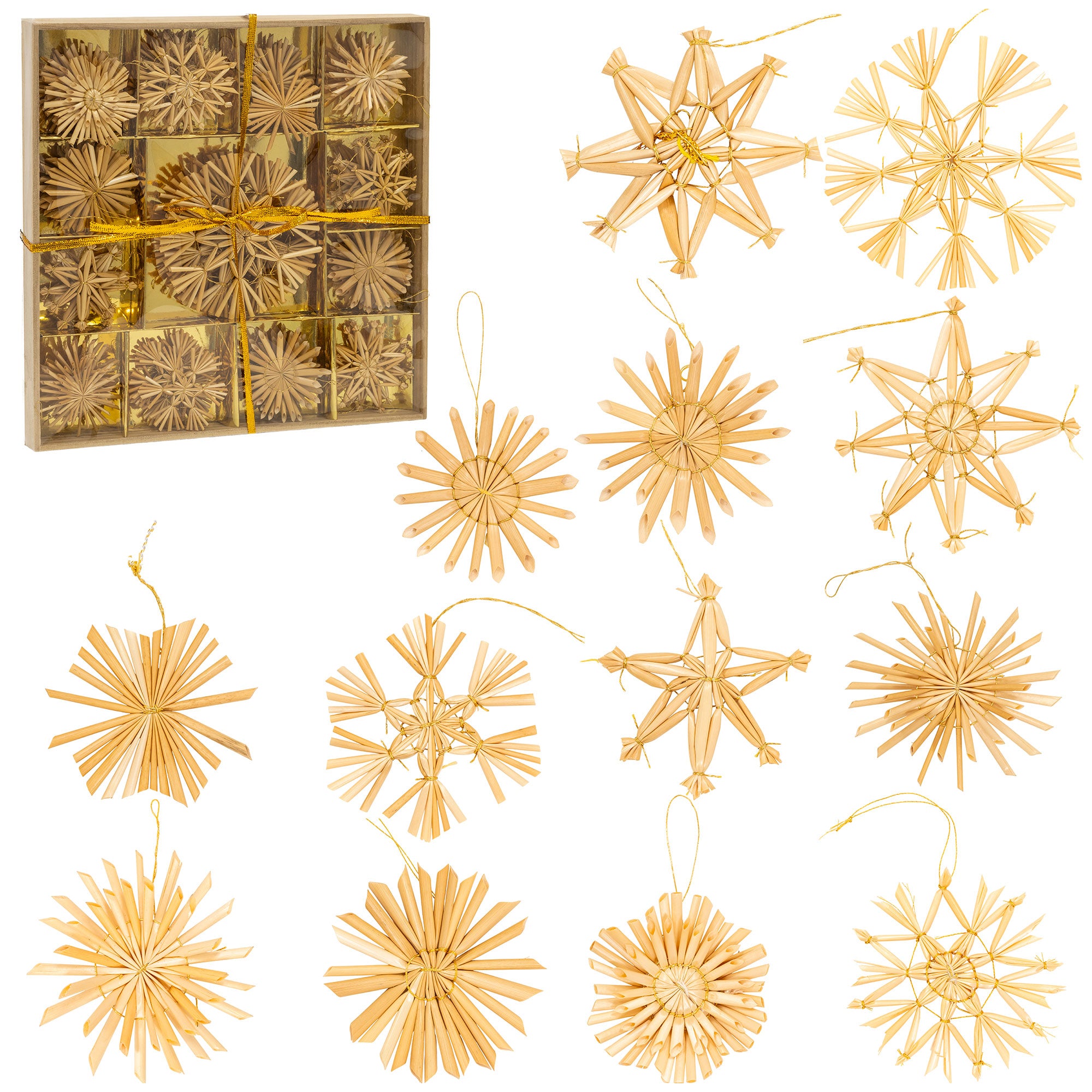 Dankzij de lichtgewicht constructie kunnen de stroballen eenvoudig worden opgehangen aan takken, slingers, kransen of decoratieve displays zonder deze te verzwaren. De set biedt voldoende stuks om een kleine kerstboom volledig te versieren of om de decoraties door meerdere ruimtes te verspreiden. Stro combineert prachtig met groen, hout, wit en goud, waardoor een harmonieus en evenwichtig geheel ontstaat.