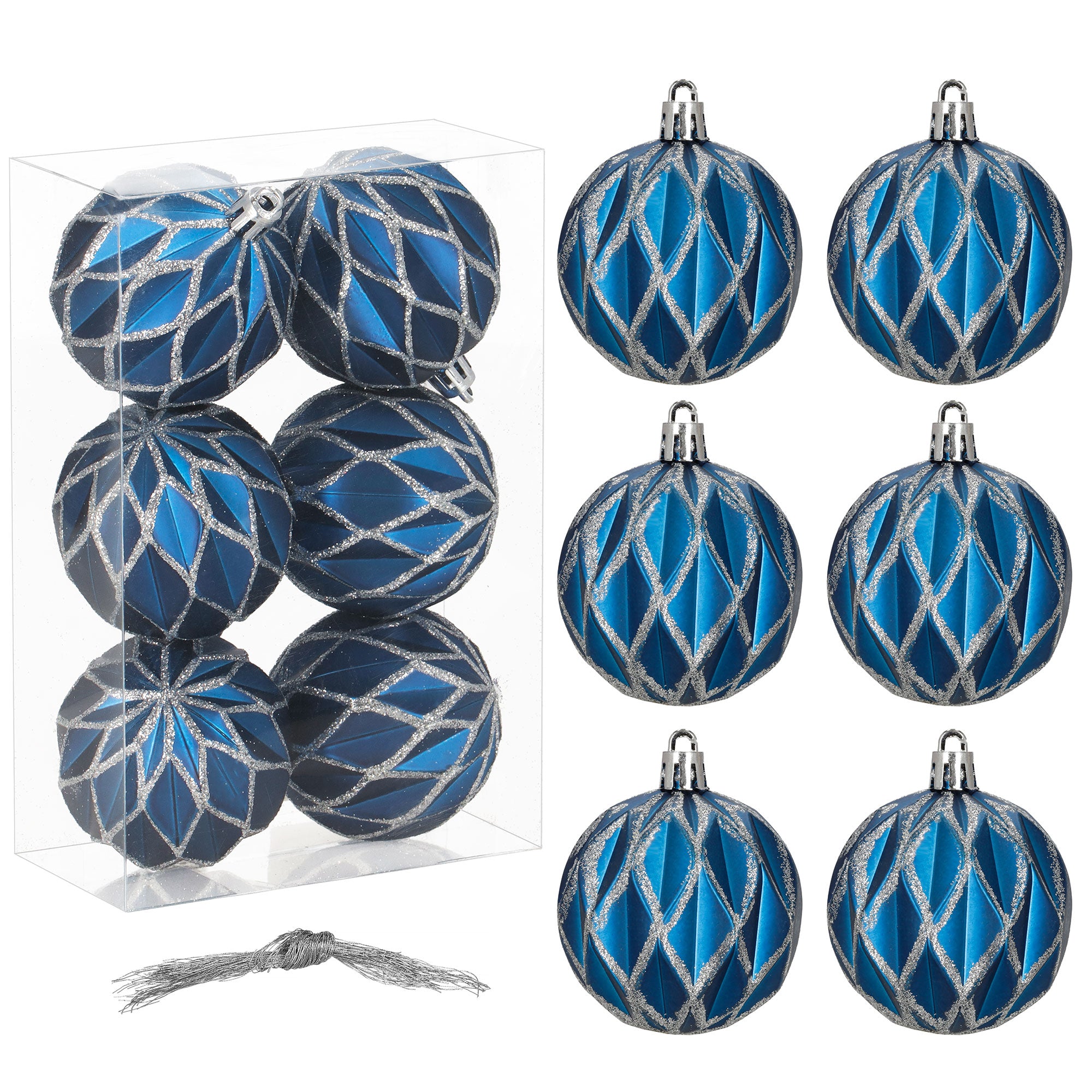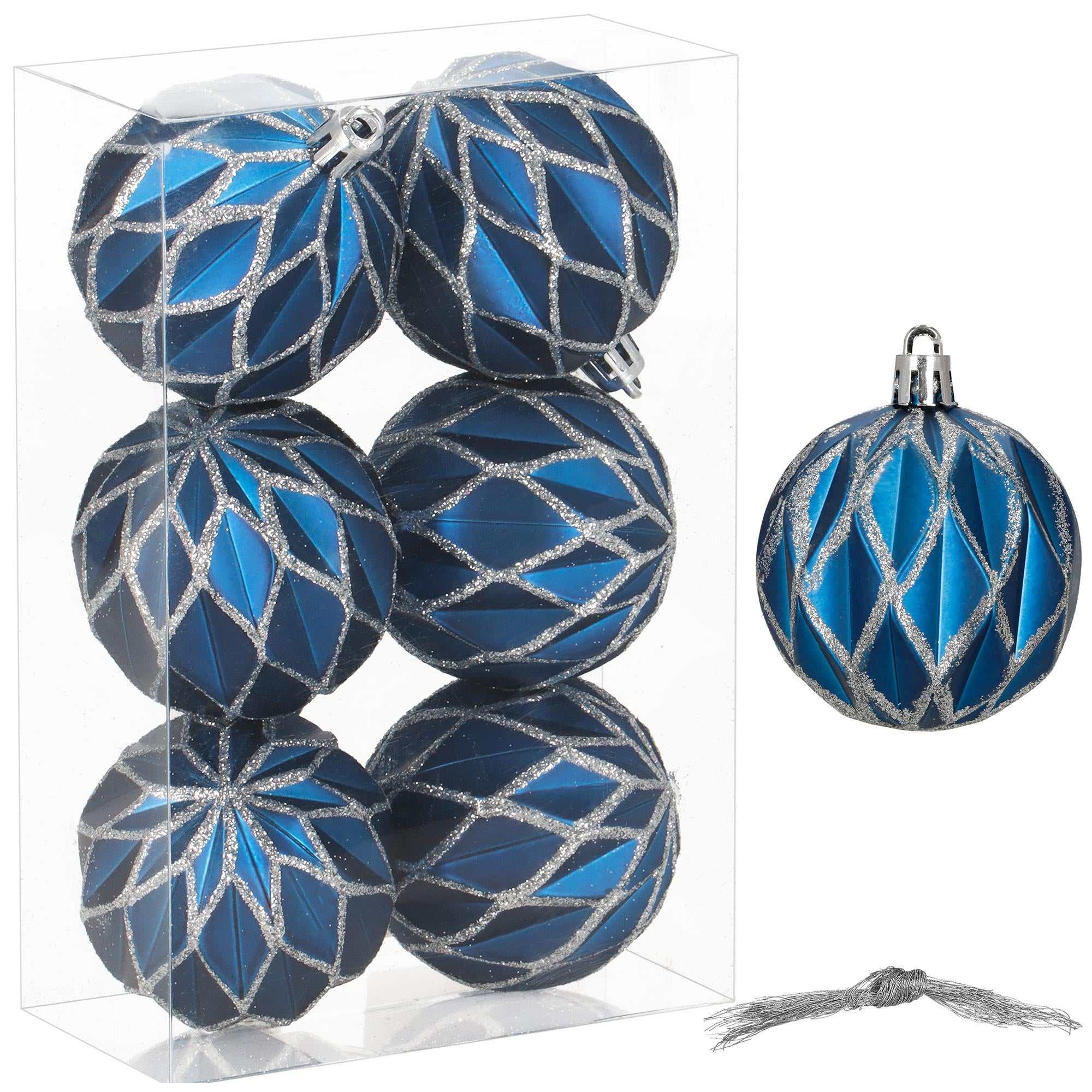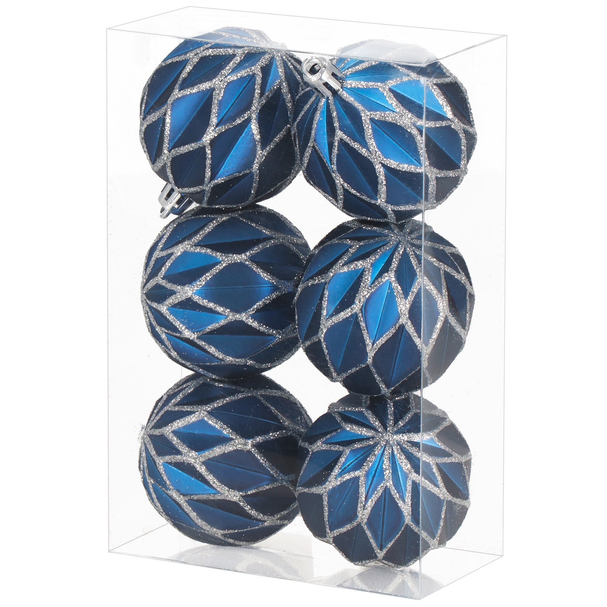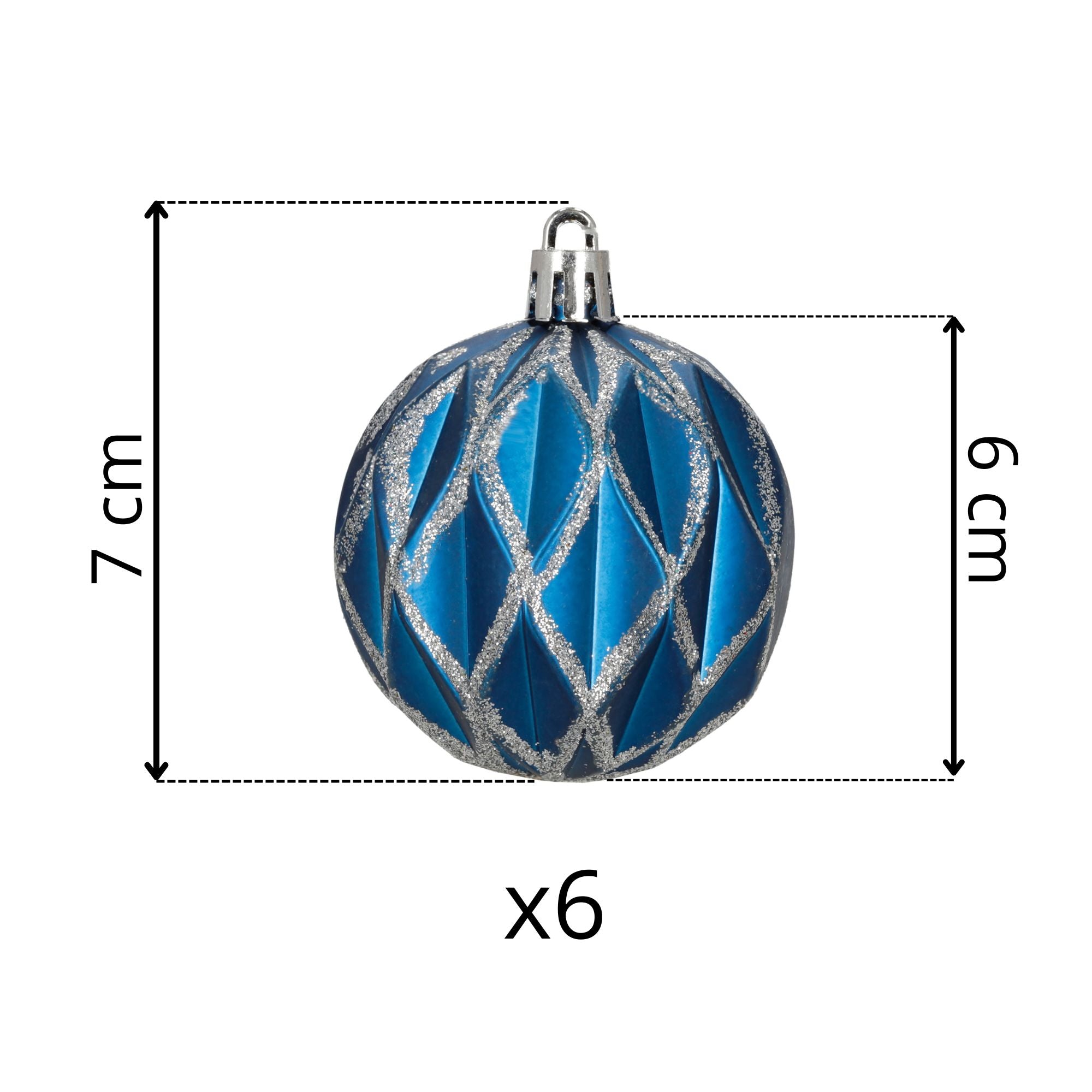 Blauwe en zilveren kerstballen 7 cm – set van 6 vol winterse elegantie