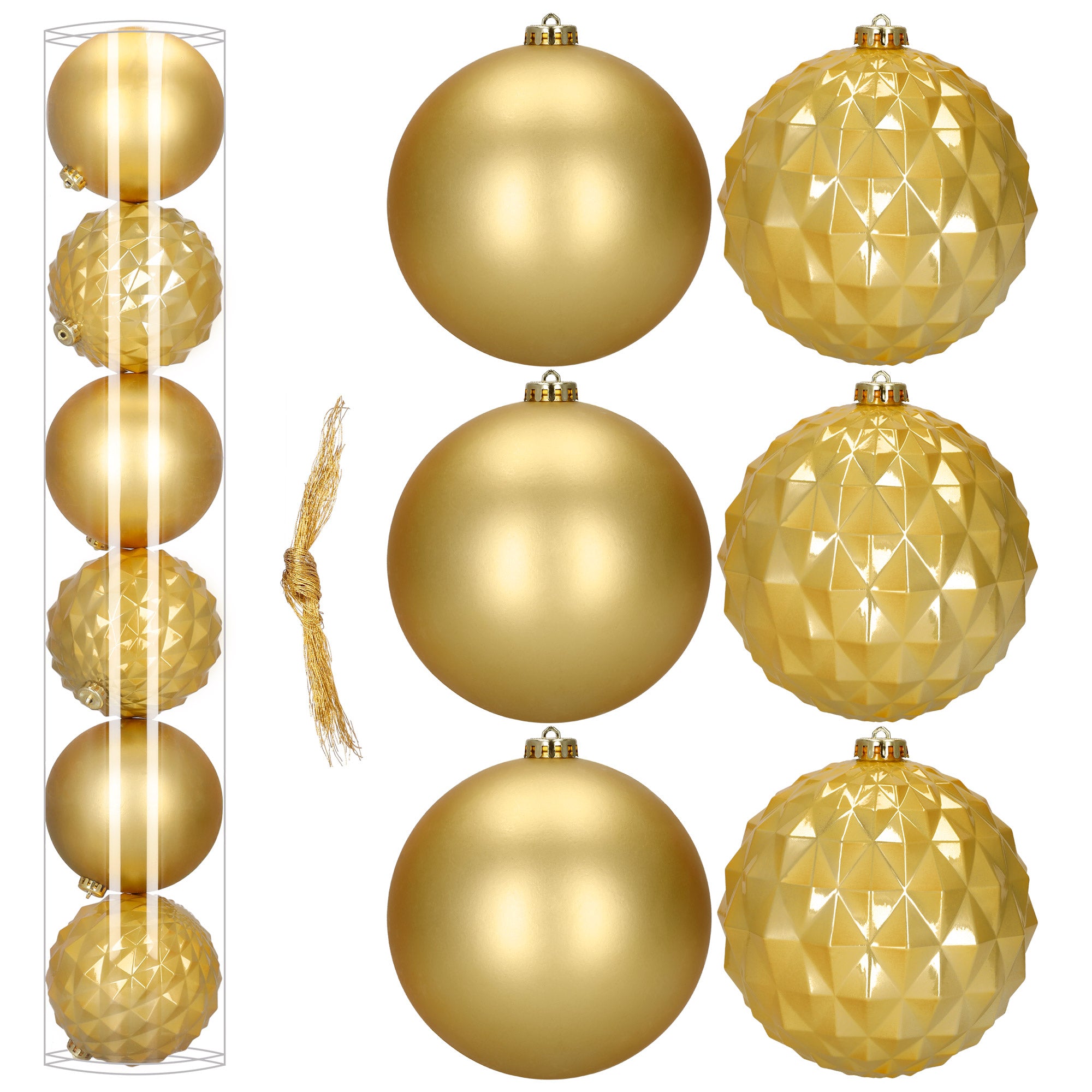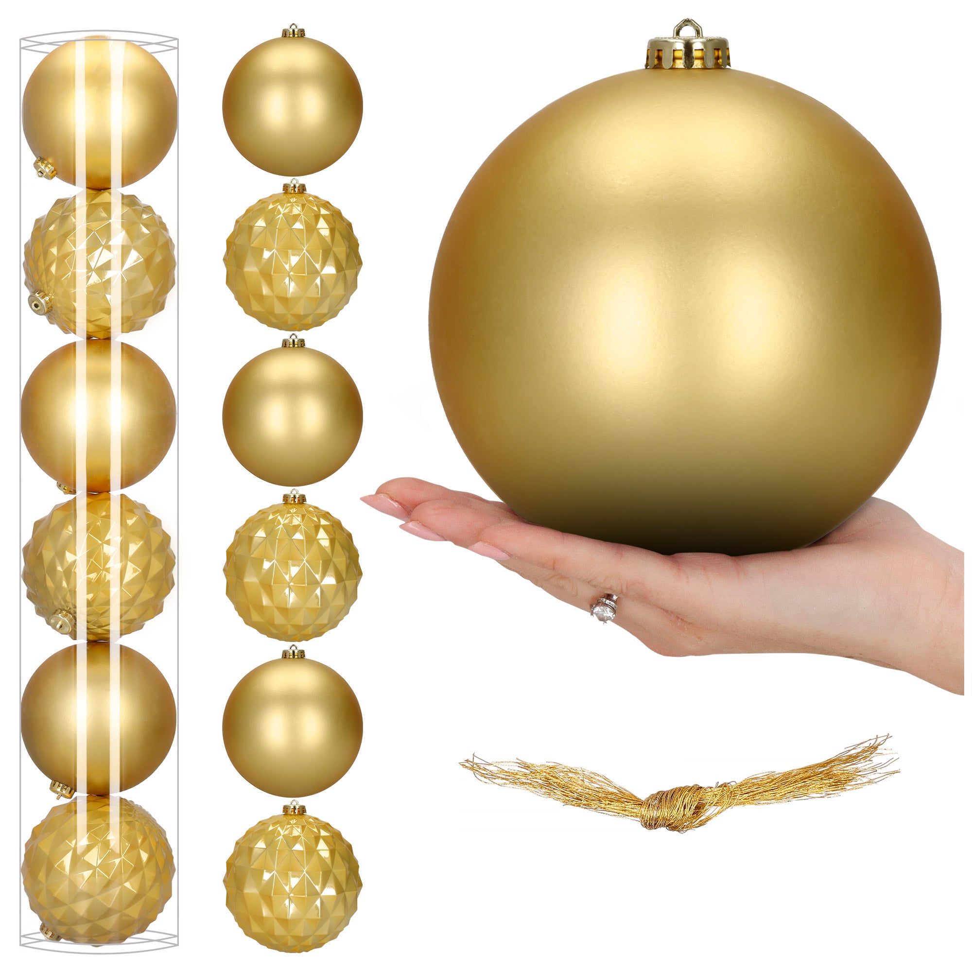 Dankzij hun formaat trekken deze kerstballen meteen de aandacht en vormen ze een prachtig middelpunt in hoge of royale kerstbomen. Ze kunnen ook uitstekend worden verwerkt in andere decoraties, zoals grote centerpieces, etalages of slingers. Elke kerstbal is zorgvuldig afgewerkt en biedt een hoogwaardige uitstraling die moeiteloos aansluit bij andere kerstaccessoires. De combinatie met traditionele kleuren zoals rood, wit of groen zorgt voor een harmonieus en sfeervol geheel. Met de meegeleverde ophangkoordjes zijn de ballen direct klaar voor gebruik, waardoor het decoreren snel en plezierig verloopt. Deze set is ideaal voor iedereen die een stijlvolle, elegante en opvallende kerstboom wil creëren.
