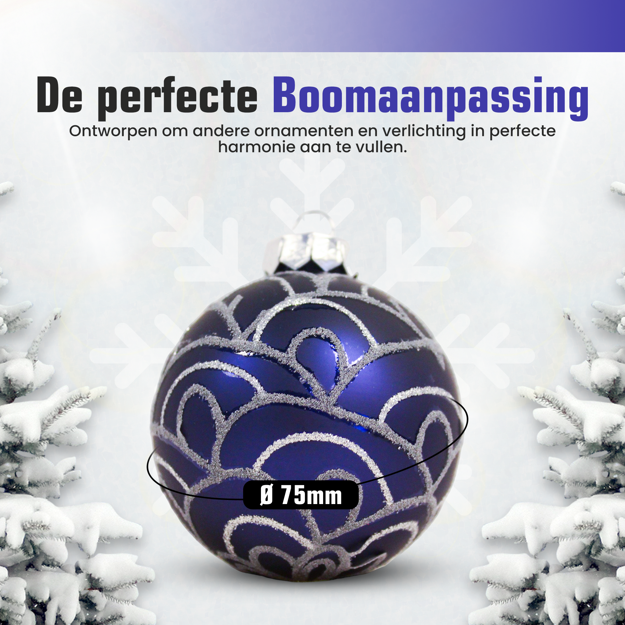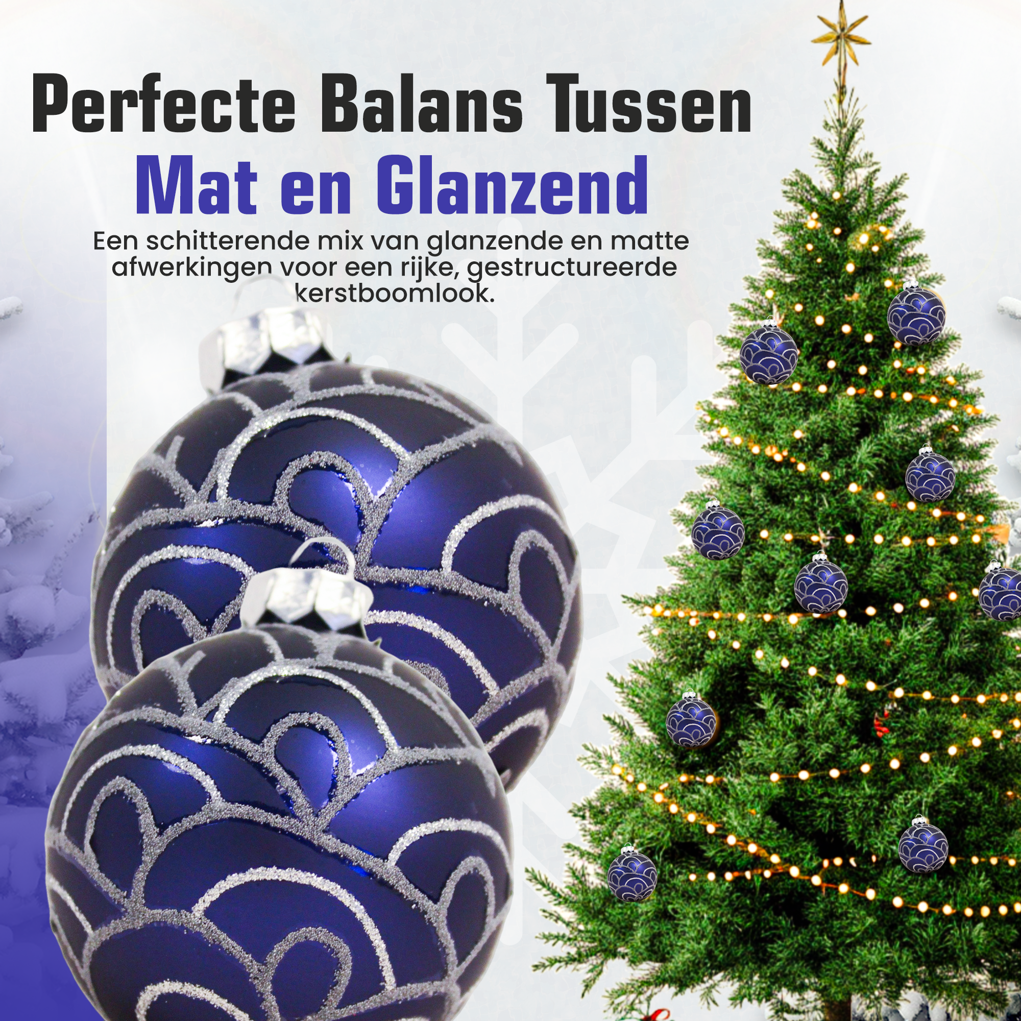De combinatie van donkerblauw en zilver zorgt voor een chique en eigentijdse uitstraling. Donkerblauw brengt diepte en rust, terwijl het zilver voor een sprankelend accent zorgt. Samen vormen ze een harmonieuze mix die perfect past in zowel moderne als traditionele kerststijlen. Het subtiele motief voegt extra verfijning toe en maakt elke kerstbal uniek.