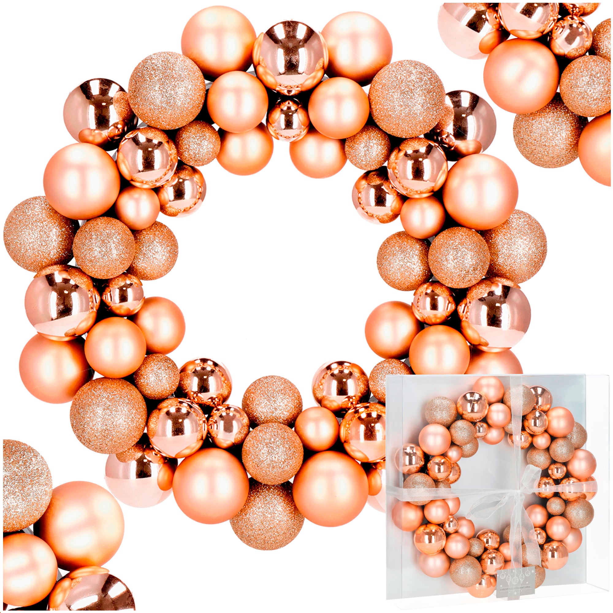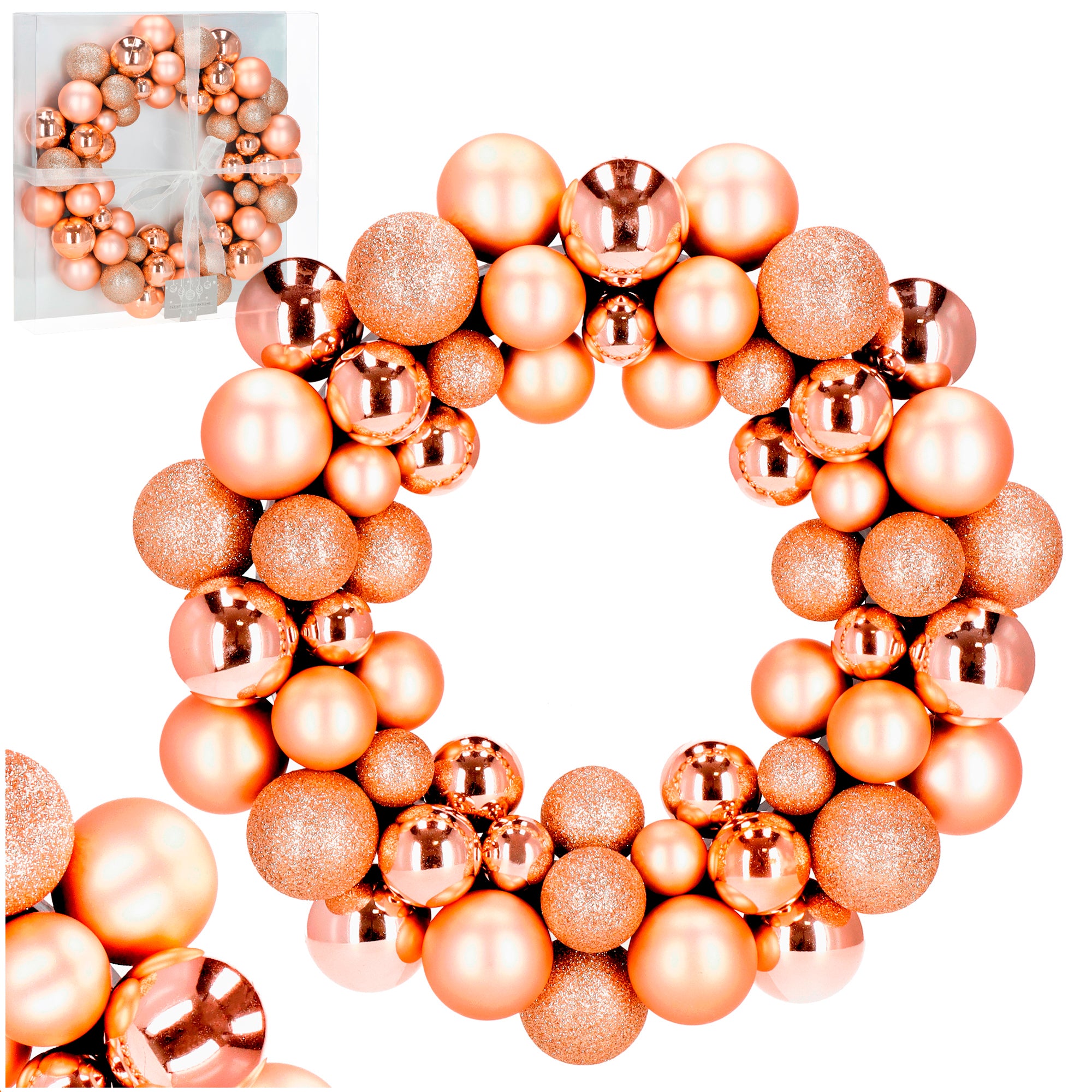 Deze elegante kerstkrans met een diameter van 34 cm is een perfecte manier om de feestelijke sfeer al bij de voordeur te laten beginnen. De gouden kerstballen in verschillende afwerkingen – mat, glanzend en glitter – creëren een luxe, driedimensionaal effect dat direct de aandacht trekt. Of u hem nu aan de deur hangt of als tafeldecoratie gebruikt, deze krans voegt een vleugje glamour en warmte toe aan uw interieur.