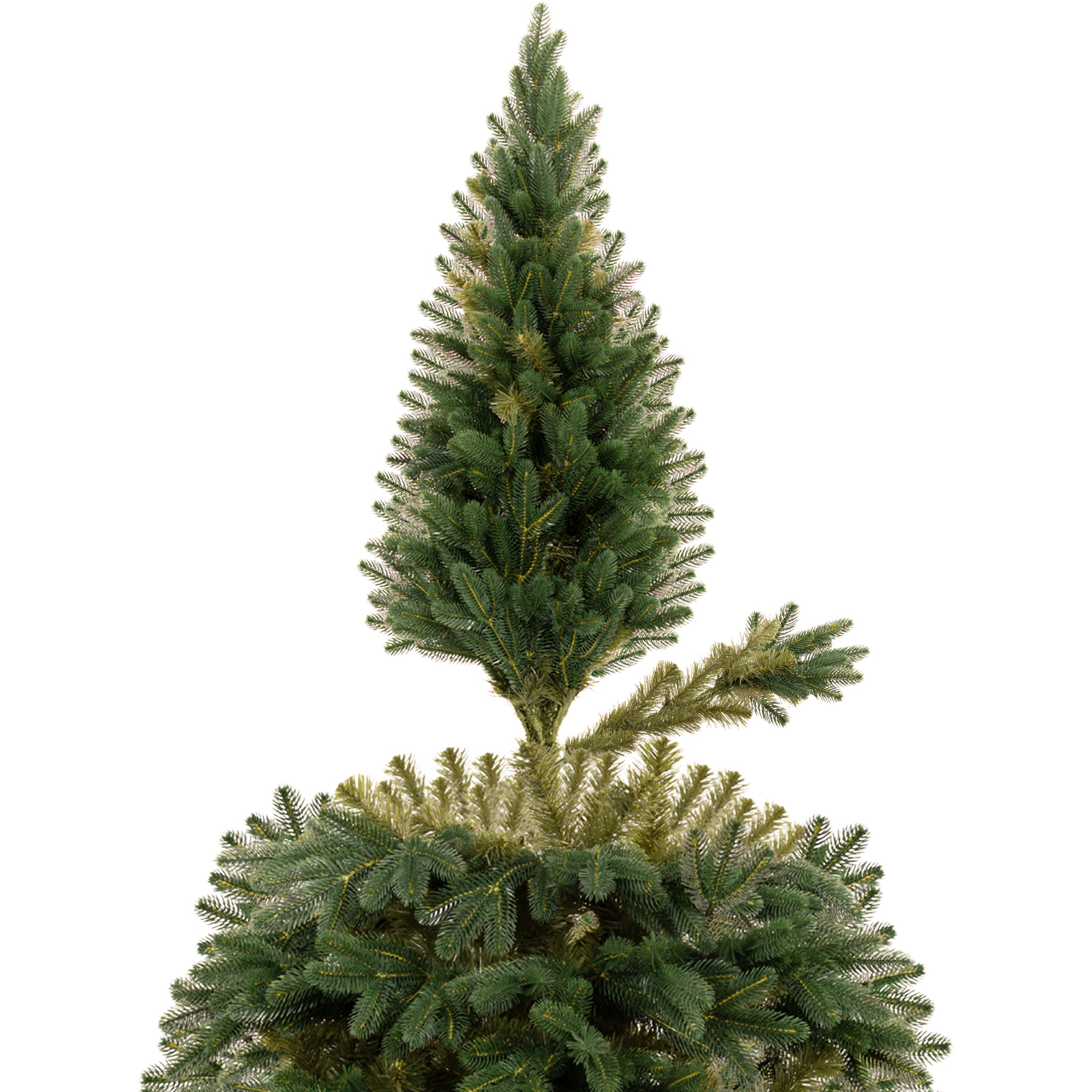 De takken zijn gemaakt van hoogwaardig PE-materiaal en imiteren op prachtige wijze natuurlijke dennennaalden. Dit zorgt voor een bijzonder realistisch effect, waardoor de boom nauwelijks te onderscheiden is van een echte spar. Klassieke kerstballen, fonkelende ledlampjes, glanzende slingers en handgemaakte ornamenten komen optimaal tot hun recht op de volle takken.