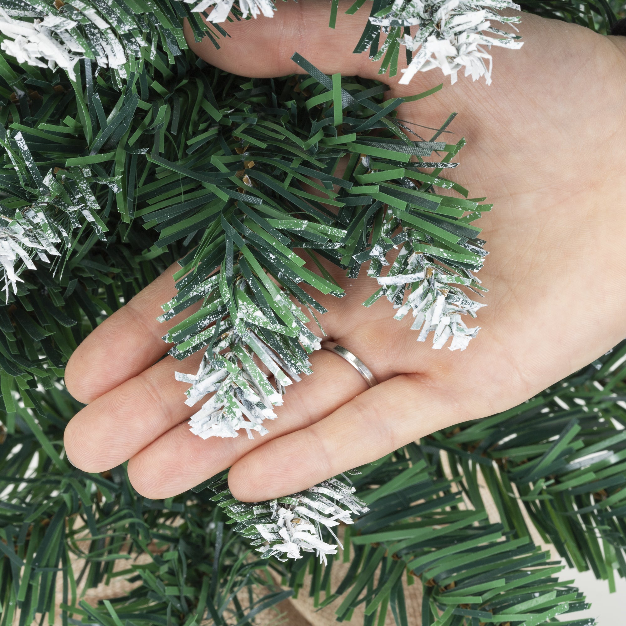 De boom is voorzien van dicht op elkaar geplaatste takken met witte uiteinden, wat een winters en authentiek effect creëert. De hoogwaardige afwerking en zorgvuldig vormgegeven naalden laten de boom eruitzien als een echte kerstboom en maken hem geschikt voor elke interieurstijl van klassiek tot modern.
