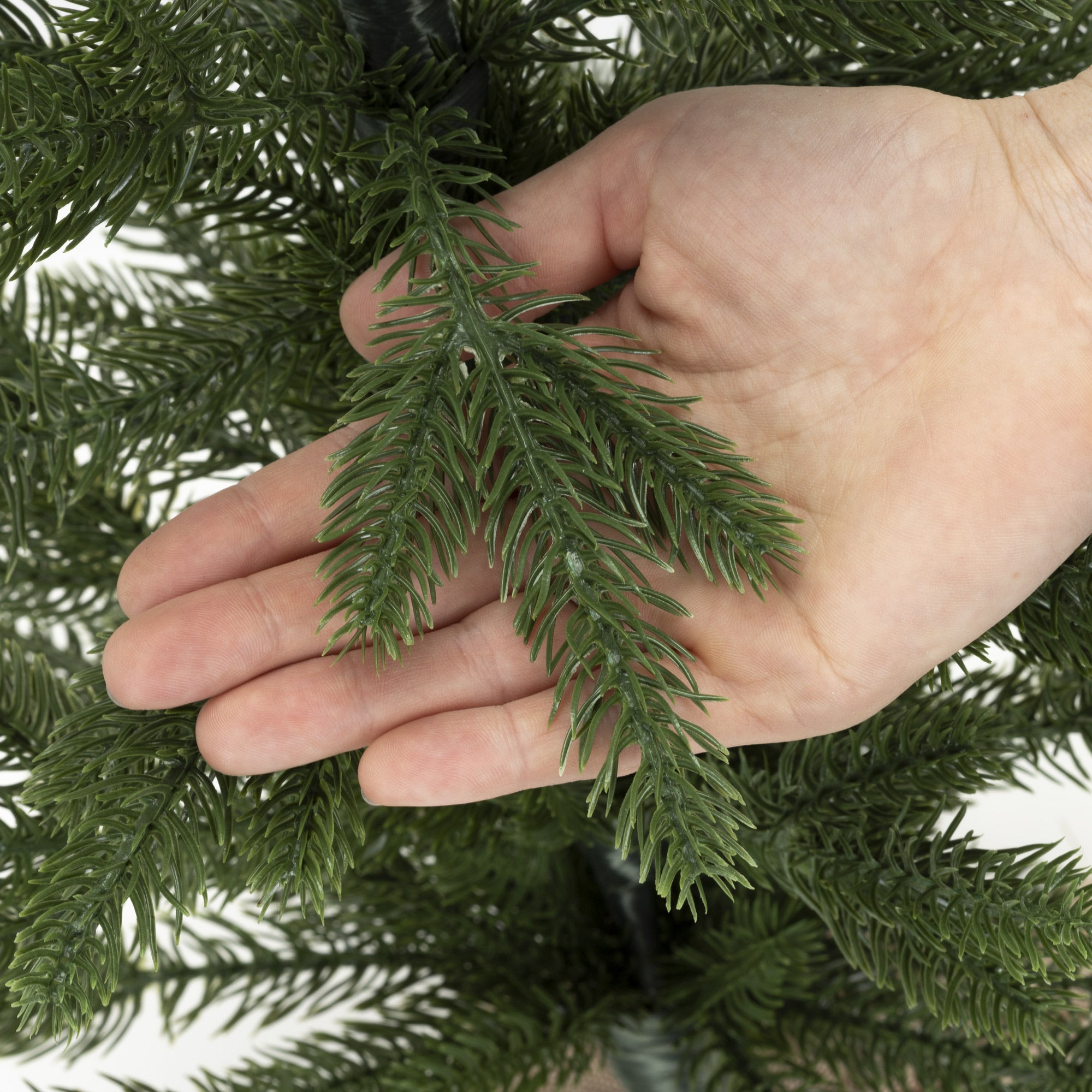 De takken zijn dicht op elkaar geplaatst en gedetailleerd vormgegeven om de uitstraling van een echte spar zo goed mogelijk na te bootsen. De boom combineert traditie met moderne technologie en past dankzij zijn neutrale look bij elke interieurstijl – van klassiek tot modern.