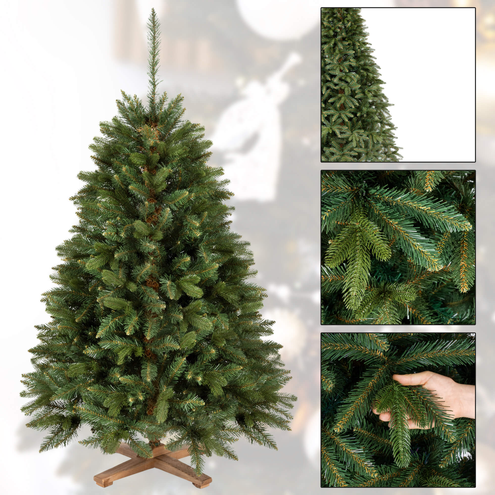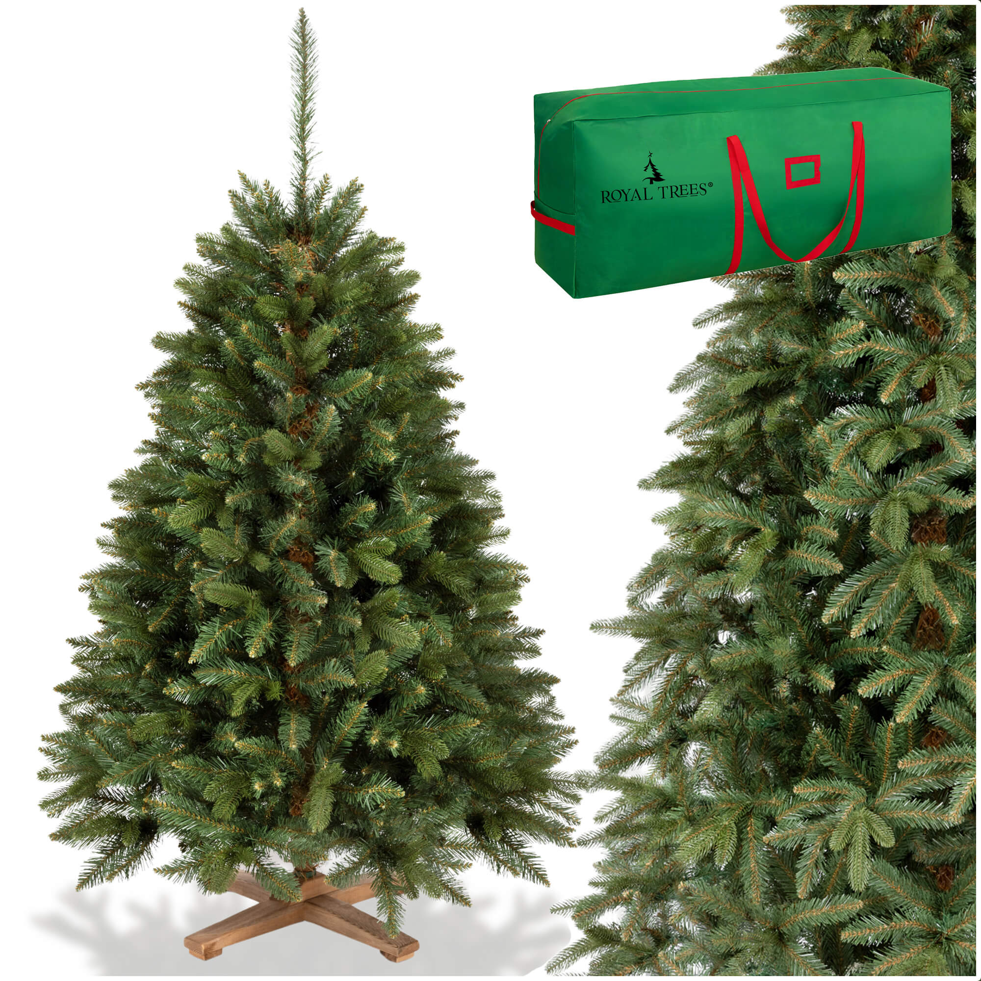 De 150 cm Premium Royal Trees kerstboom brengt de unieke charme van de feestdagen rechtstreeks in je woonkamer. Met zijn compacte formaat is hij ideaal voor kleinere ruimtes, maar toch groot genoeg om een warme en feestelijke sfeer te creëren. Zijn realistische uitstraling maakt dat je nauwelijks verschil ziet met een echte spar, terwijl je wel geniet van het gemak van een kunstboom. Dankzij de stevige houten standaard staat hij altijd stabiel, zelfs wanneer je de takken rijkelijk versiert met kerstballen, verlichting en slingers.
