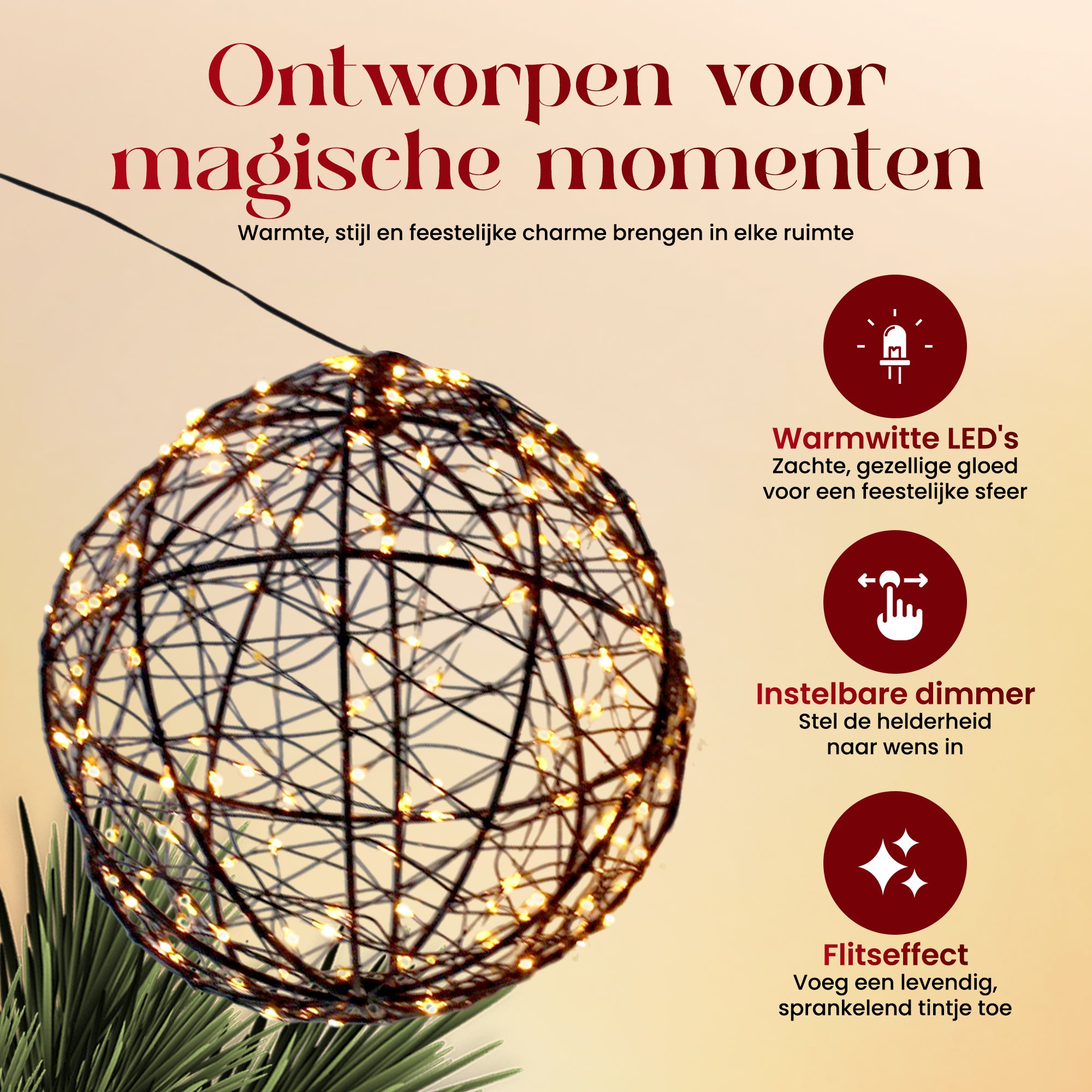 Of je hem nu gebruikt als onderdeel van je kerstdecoratie of als sfeermaker tijdens koude winteravonden, deze lichtbol combineert kwaliteit, duurzaamheid en stijl. Hij is geschikt voor zowel binnen- als buitengebruik en geeft jouw omgeving net dat beetje extra warmte en charme.