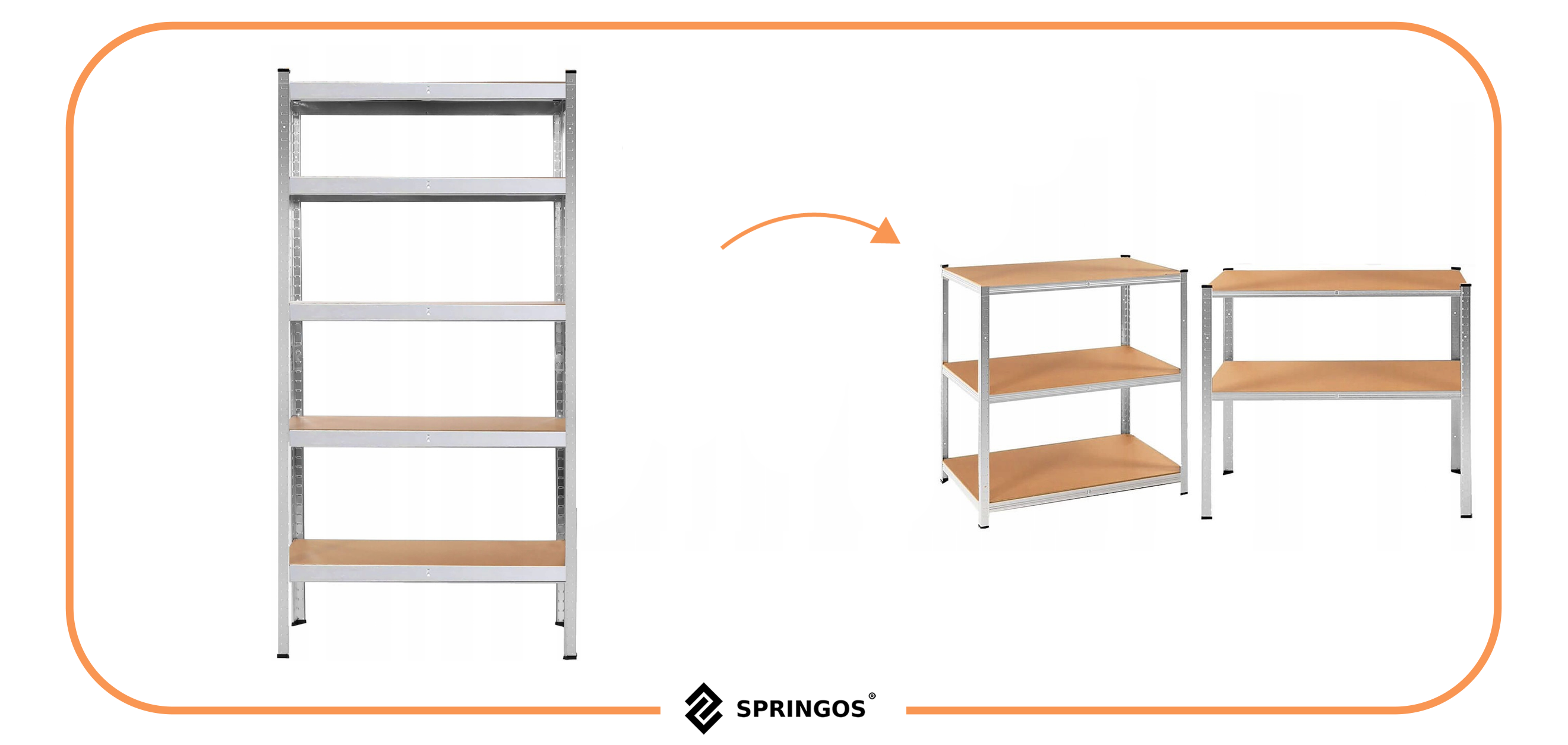 De opbergrek is gemaakt van de beste materialen en is geschikt voor opslag van elk soort goederen. Deze stellingkast is uitgerust met 5 sterke planken die allen een belasting van 175 kg kunnen dragen. Het gewicht moet gelijkmatig verdeeld worden over de planken! Vermijd puntbelasting om het risico van falen tegen te minimaliseren. Dankzij de brede hoogteverstelling van de planken kan je in plaats van één grote stellingkast bijvoorbeeld 2 kleine stellingkasten maken. Dit is een fantastische oplossing voor lagere kamers, waar geen volledige stellingkast in past.