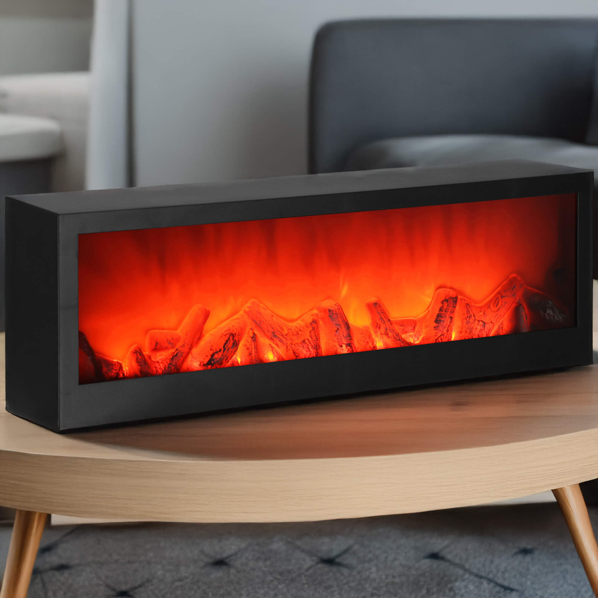 Realistisch vlameffect: Gloeiend hout en bewegende vlammen creëren een warme, gezellige sfeer, ideaal voor lange avonden.