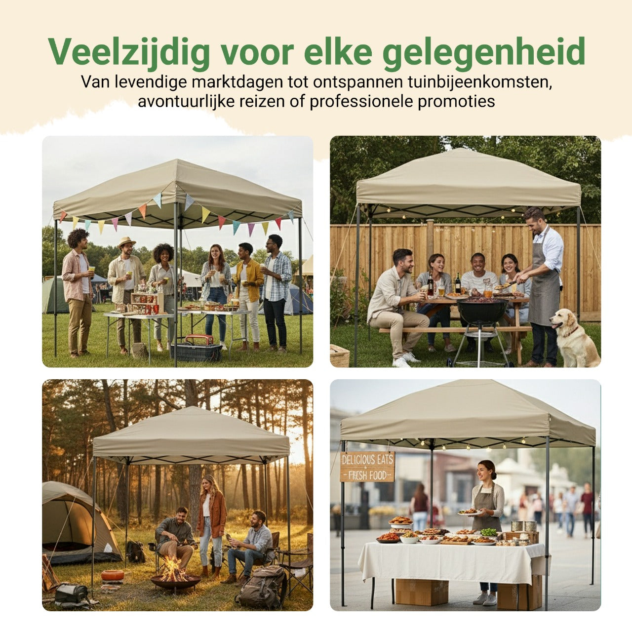 Deze partytent is ideaal voor uiteenlopende gelegenheden: tuinfeesten, markten, sportevenementen, foodtrucks, campings, beurzen en promotieactiviteiten. Door het lichte gewicht en de compacte transportvorm is hij ook zeer geschikt voor mensen die vaak onderweg zijn.