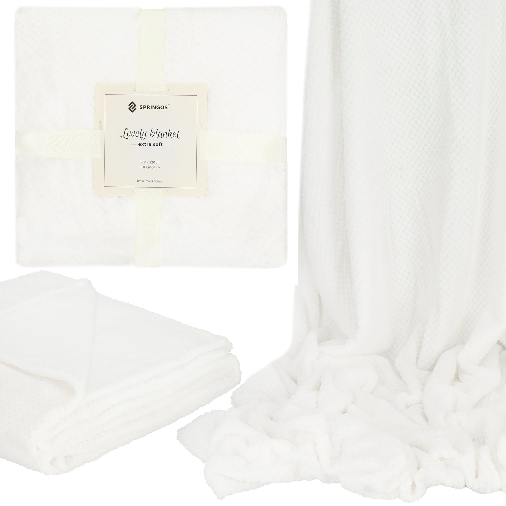 Plaid | Sprei | Deken | 220 x 200 cm | Pluche | Wit