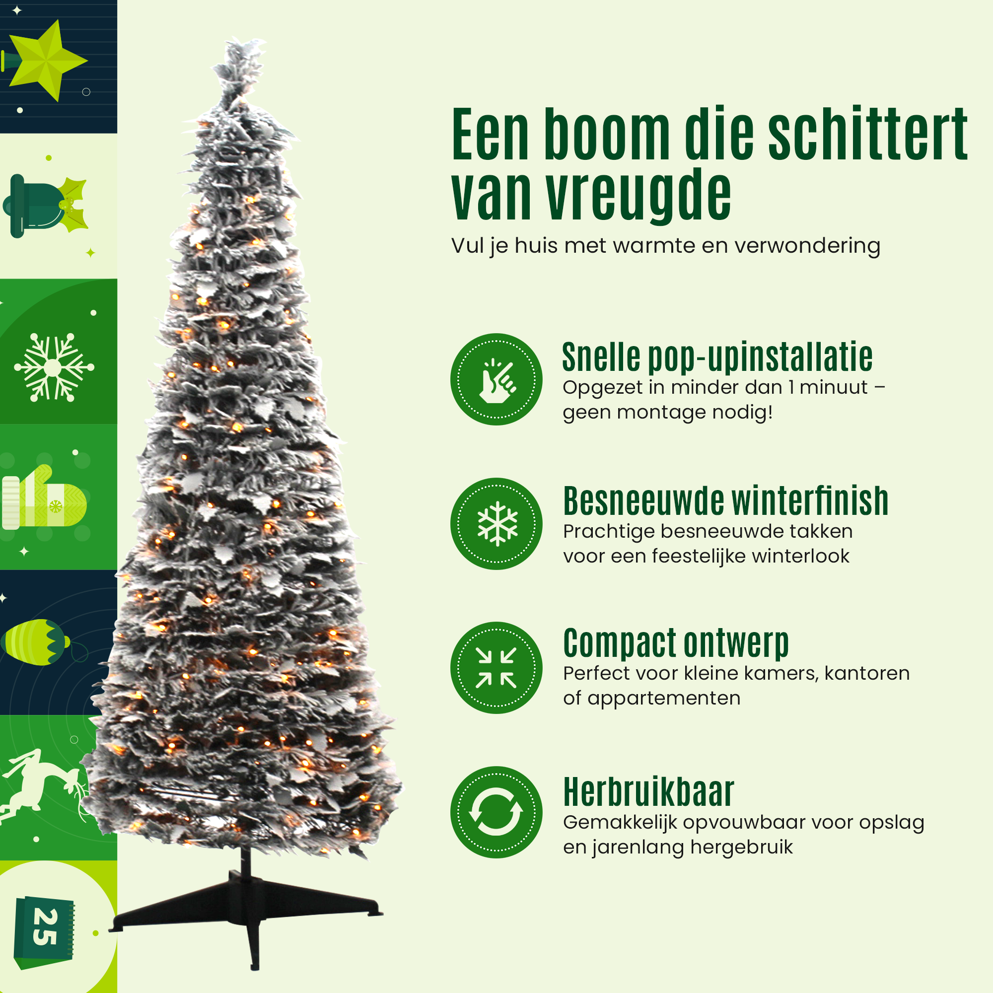 Kortom: deze kunstkerstboom combineert gemak, sfeer en stijl in één. Met zijn snelle opzet, ingebouwde verlichting en charmante sneeuwlook is hij een absolute blikvanger tijdens de feestdagen. Perfect voor iedereen die zonder moeite een warme kerstsfeer wil creëren.