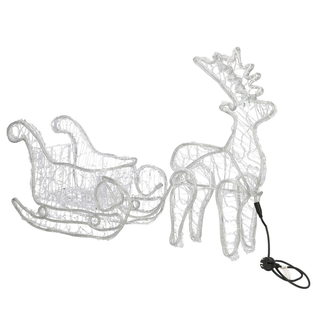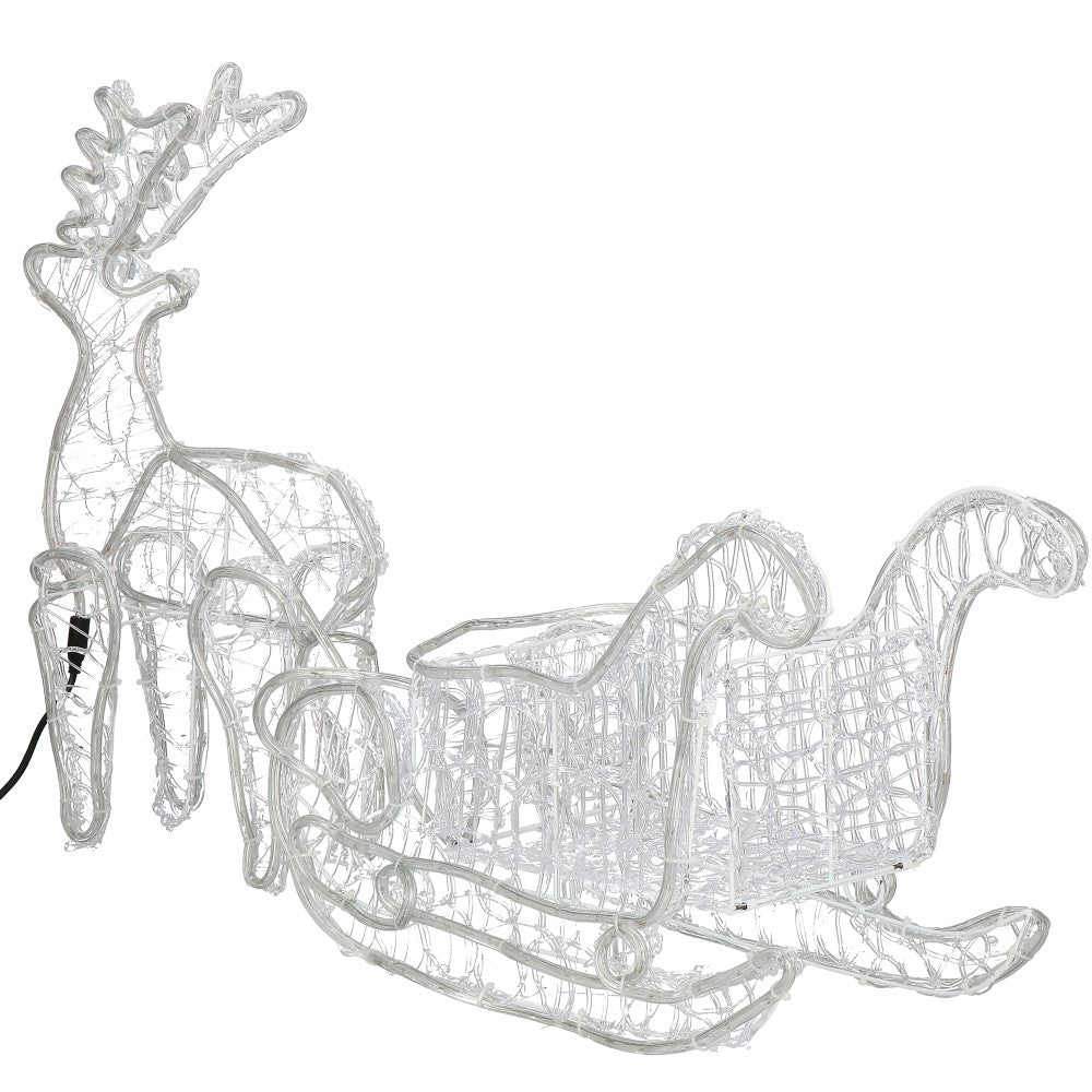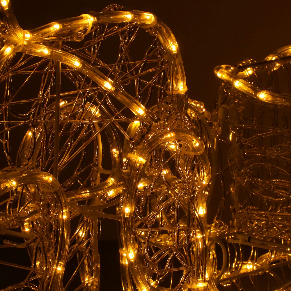 Het lichte rendier met slee van Springos bestaat uit 312 LEDs. Hij wordt aangedreven door elektriciteit en kan dankzij de IP44-klasse zowel binnen als buiten worden gebruikt. Een van de voordelen is het gebruik van energiebesparende LEDs, die zich onderscheiden door een laag stroomverbruik. Het is een geweldige optie om het interieur en de tuinen een uniek feestelijk karakter te geven. Warm witte LEDs zullen elke kamer perfect decoreren. De decoratie kan gebruikt worden voor het decoreren van kantoren of etalages, en zal ook een stralend object in uw tuin zijn.