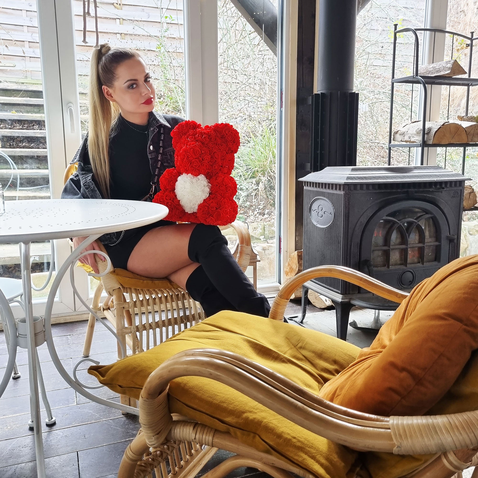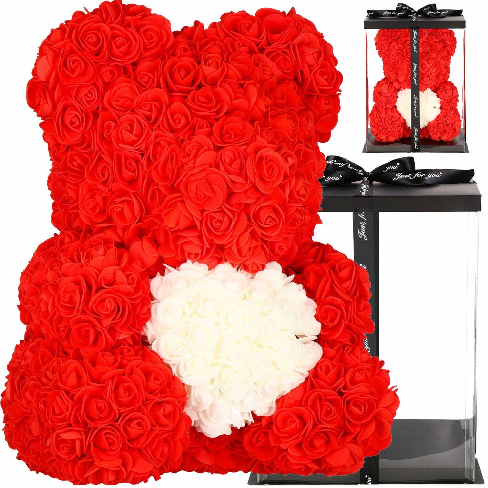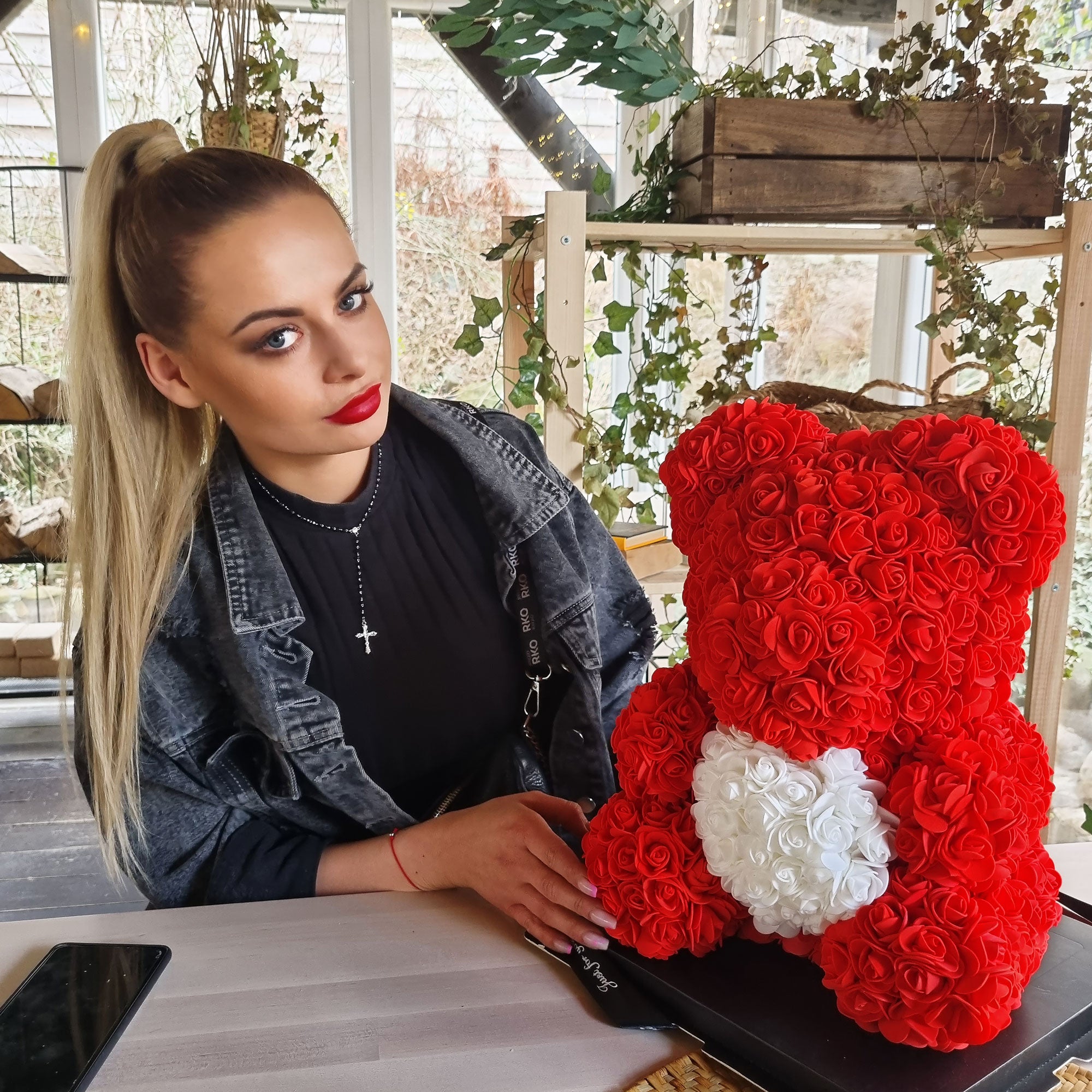 De Rozen Beer is gemaakt van hoogwaardig kunststof rozen die geen water nodig hebben en er levensecht uitzien. Rozen verwelken, maar deze Rozen Beer blijft in perfecte staat, een blijvende herinnering aan een bijzonder moment.
