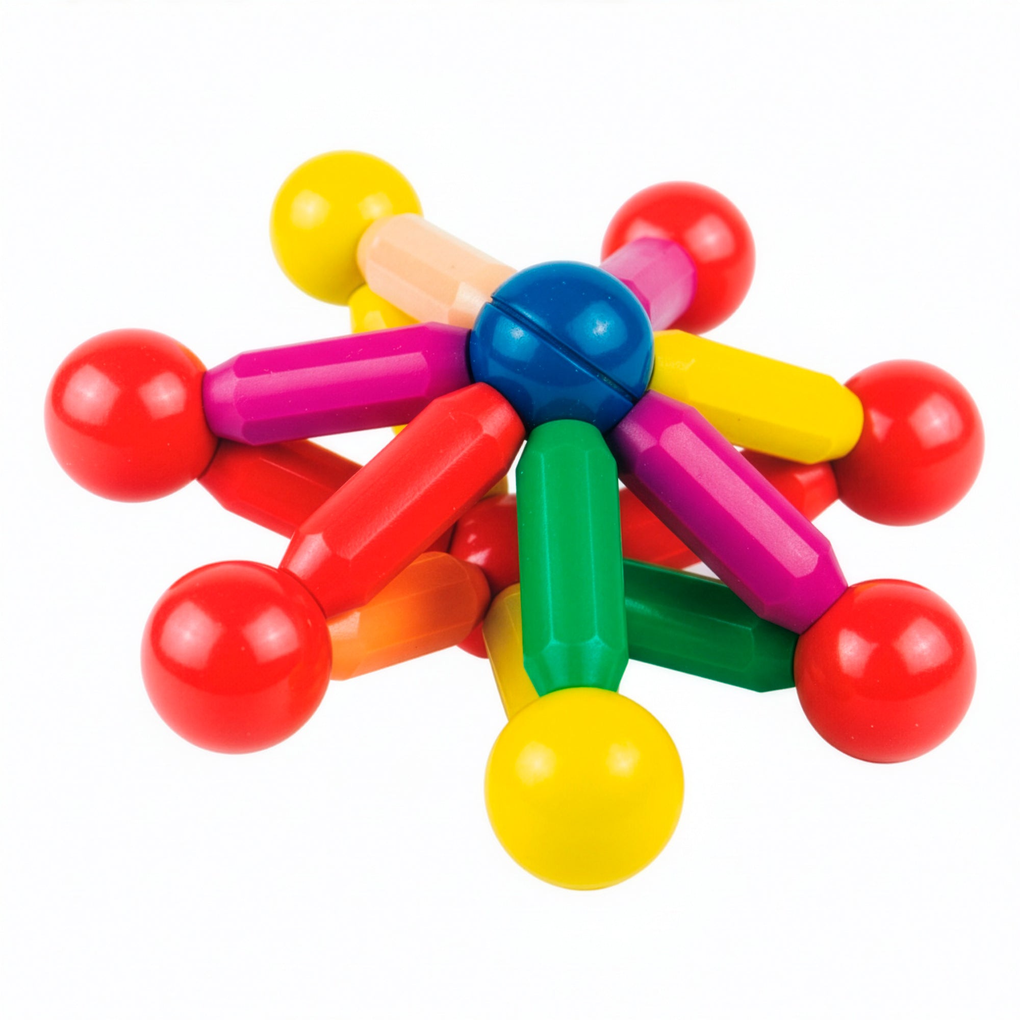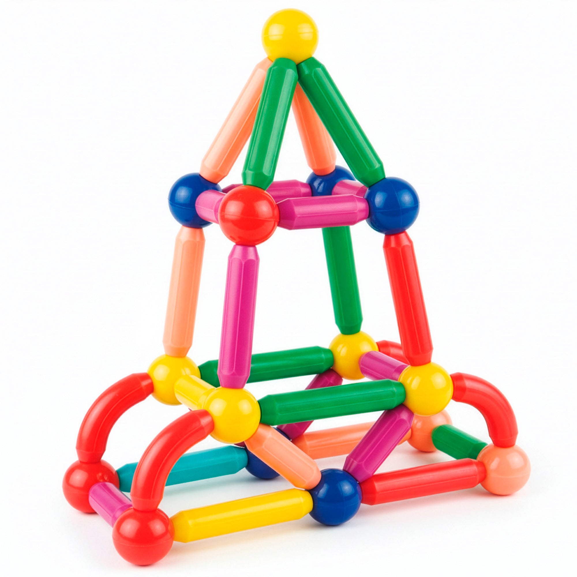 Of het nu gaat om torens, slingerende paden, voertuigen of futuristische constructies: met deze uitgebreide set creëren kinderen moeiteloos hun eigen speelwereld. De combinatie van rechte en gebogen stokjes met stevige magnetische bollen zorgt voor grenzeloze mogelijkheden en urenlang creatief speelplezier.