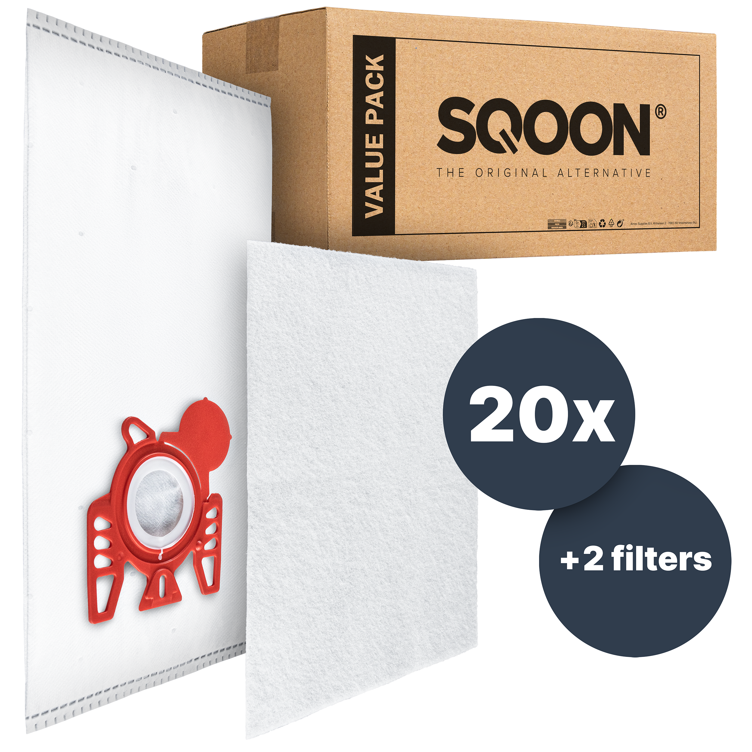 Deze SQOON® stofzuigerzakken zijn speciaal ontwikkeld als kwalitatief alternatief voor de originele Miele F, J en M 3-D Hyclean zakken. Ze bieden dezelfde betrouwbare prestaties en perfecte pasvorm, zodat je stofzuiger altijd optimaal blijft functioneren.